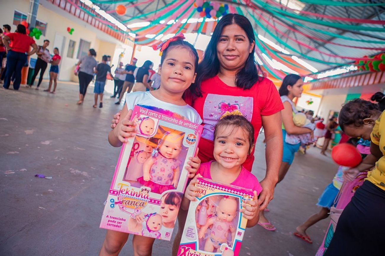 “Todo ano é sempre uma angustia, a gente quer dar o melhor para os nossos filhos. Só que a situação está muito difícil, nossa prioridade é a comida na mesa. Mas graças a Deus mais uma vez a prefeita tem nos dado esse presente, é muito bom ver o filho da gente feliz. Os brinquedos são muito bons e eles gostaram muito. Só agradecer”, disse a mãe.