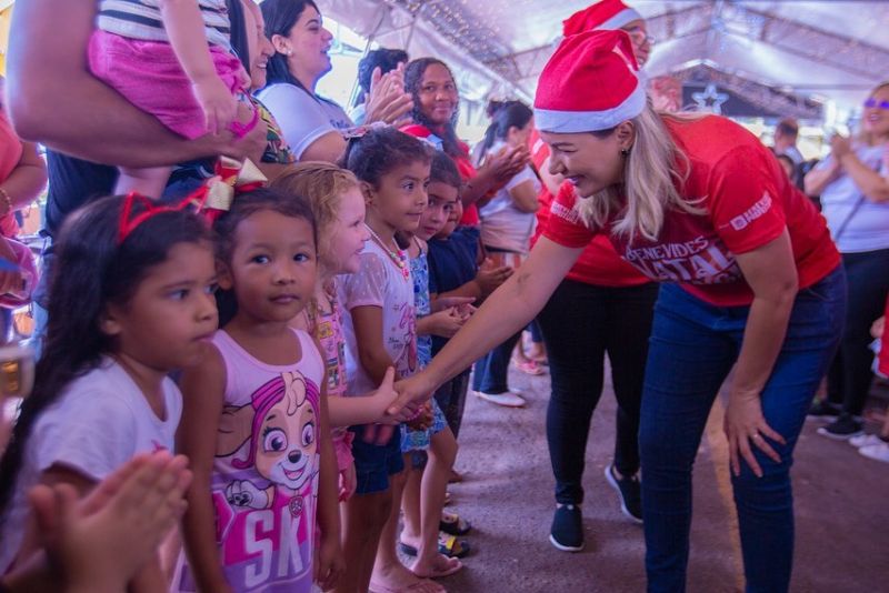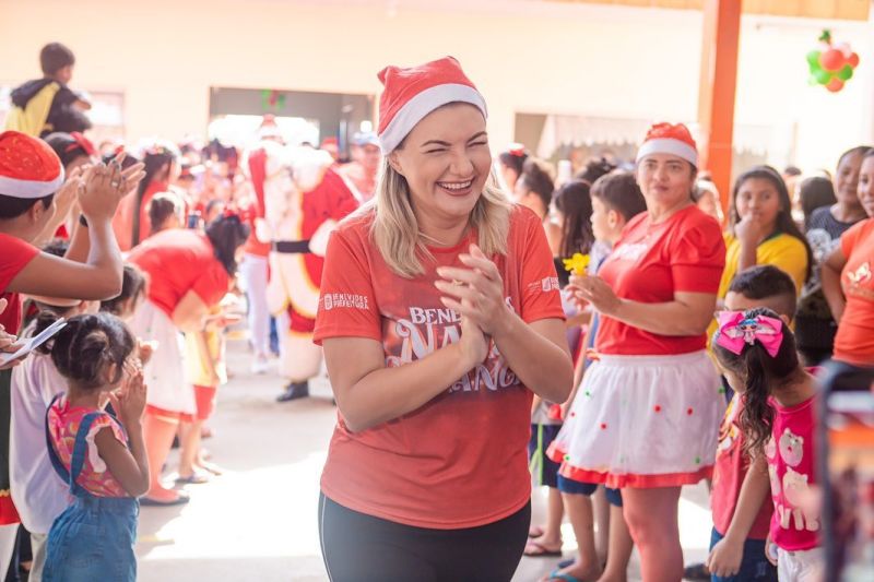 “Hoje pela manhã concluímos a entrega dos brinquedos para todas as nossas crianças da Rede Municipal de Ensino de Benevides. Foram 6 entregas feitas com muita emoção e alegria. Fizemos questão de estar presente em todas as entregas, porque é sempre um momento especial de encontro com as crianças e famílias. As crianças merecem sempre o melhor e ano que vem os presentes serão ainda melhores, porque Primeira Infância sempre será a nossa prioridade. Agradeço a Deus por ter nos abençoado, e agradeço de modo especial a todos os nossos profissionais da Secretaria Municipal do Trabalho e Promoção Social e Secretaria Municipal de Educação que se dedicaram para que esse momento fosse possível. Muito obrigada! E desejo a todos um Natal feliz e cheio de amor!”, expressou a Chefe do Executivo.