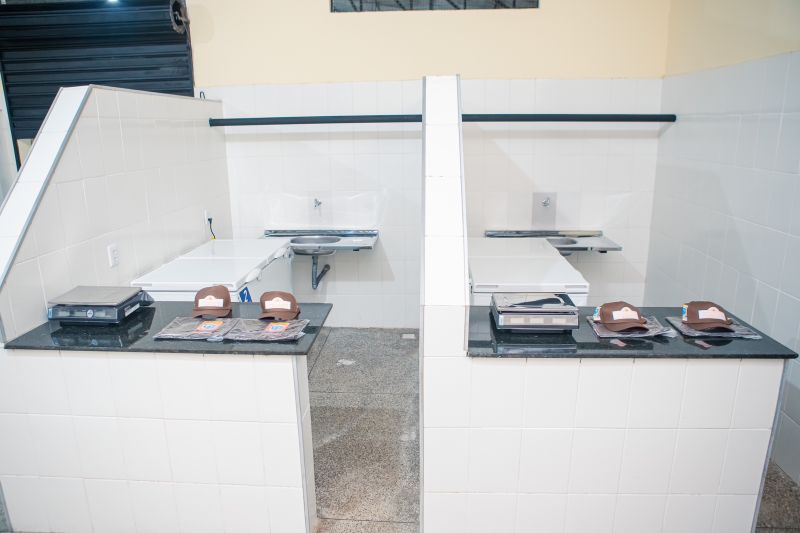 Um espaço amplo e adequado para a oferta de produtos de artesanato, hortifruti, frutas, farinha, pescado, frango e mariscos.
