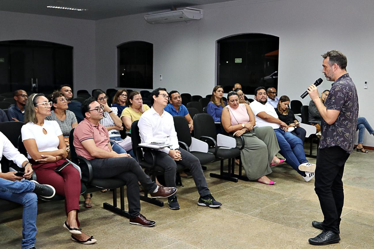 Encontro com as secretarias "A Semana da 1ª Infância foi pensada, pela prefeitura para os servidores, como uma forma de sensibilização sobre esse tema tão atual que é a 1ª infância, cuidar dessa primeira fase da vida que é fundamental, não só no futuro como no presente, cuidar da primeira infância é cuidar hoje, da cidade, da comunidade, cuidar dos espaços, para que possamos partir juntos nessa nova política pensada pela Prefeitura de Benevides", comentou Kelly Calderaro, coordenadora do Centro de Formação e Pesquisa de Benevides e ponto focal da 1ª infância no município.