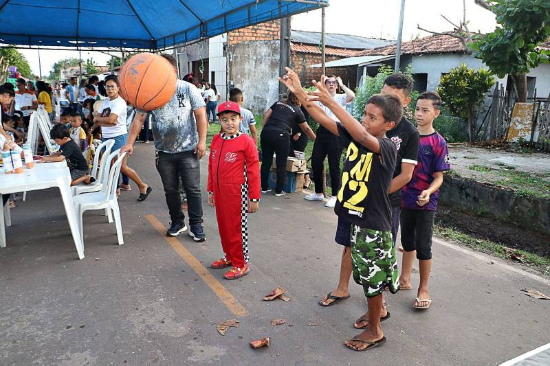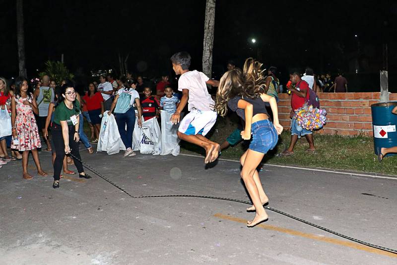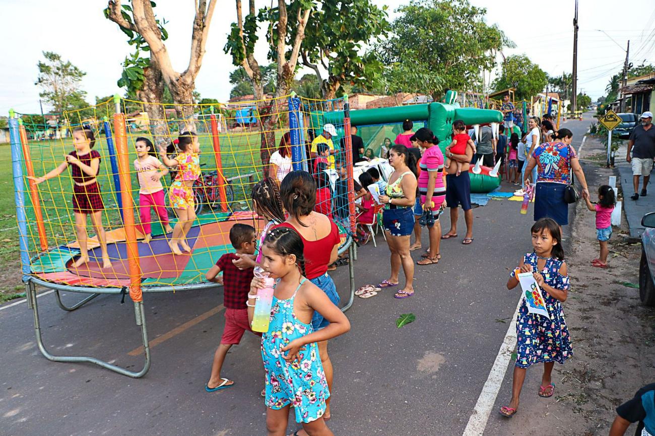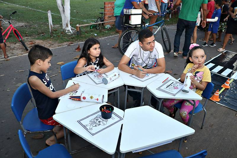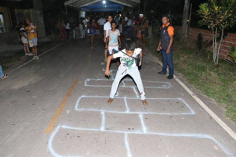 A criançada se divertiu de todas as maneiras em brincadeiras tradicionais como amarelinha, cabo-de-guerra, taco e dança das cadeiras, entre outras. Teve um extenso ateliê de pintura, jogos informativos, brinquedos, semeadura e distribuição de mudas e sementes, vacinação e informações sobre o banco de empregos mantido pela Prefeitura de Benevides. "Eu gostei muito. Quando vai ter no meu bairro?" perguntou Kauã Lima, 10 anos, morador do bairro Begolândia. Ele e uma turma de amigos chegaram de bicicleta, brincaram muito e ficaram até o final da programação. A comunidade do Santa Rosa, bastante participativa, também aproveitou para comemorar o asfaltamento de 2 quilômetros de vias do bairro. Foram as ruas John Kennedy, Herbert de Souza, Luther King, rua das Maçãs, Nilson Chaves, 19 de Março e Ayrton Senna. E mais: o Santa Rosa agora está com 100% de iluminação em led, melhorias que estão se expandindo para todo o município.
