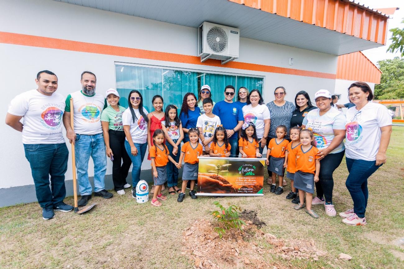 No Dia da Árvore, 21 de setembro, dezenas de mãozinhas se sujaram de terra e plantaram vida. Foram as crianças do CMEI Florescer plantando várias mudas, em mais uma edição do projeto Plantando Esperança, mantido pela Prefeitura de Benevides, por meio da Secretaria Municipal de Gestão Meio Ambiente e Turismo (SEMMAT) e Secretaria Municipal de Educação (SEMED). As mudas foram doadas pela empresa Zeppone.