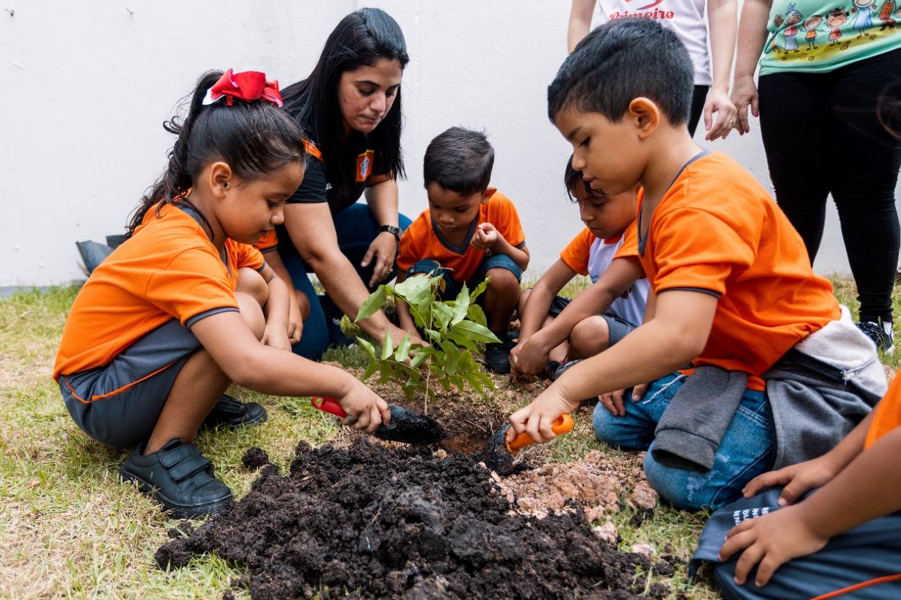 As crianças receberam informações sobre a importância de plantar para arborizar o planeta, começando pela cidade onde moram.