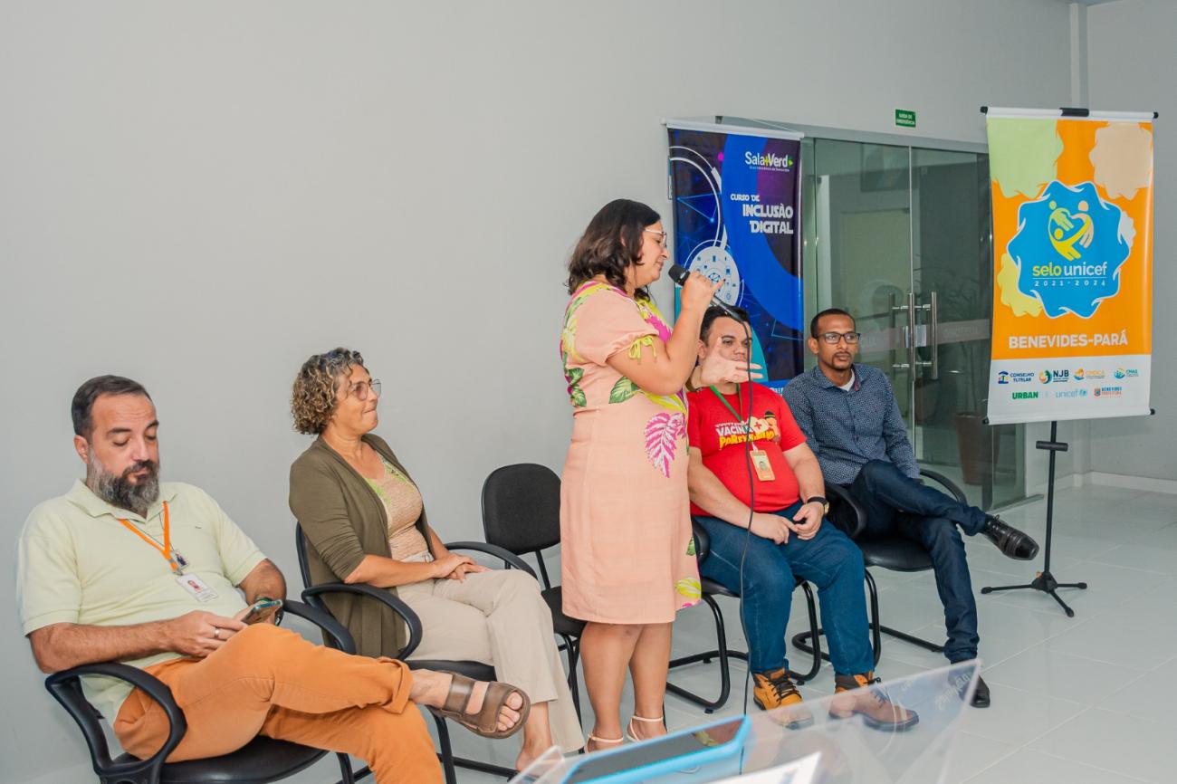 O articulador do Selo UNICEF Benevides, Miguel Sepêda, fez uma explanação sobre a importância do fortalecimento de políticas públicas municipais voltadas para as crianças e para os adolescentes, proposta que deve se destacar nas cidades onde o Selo UNICEF está presente.
