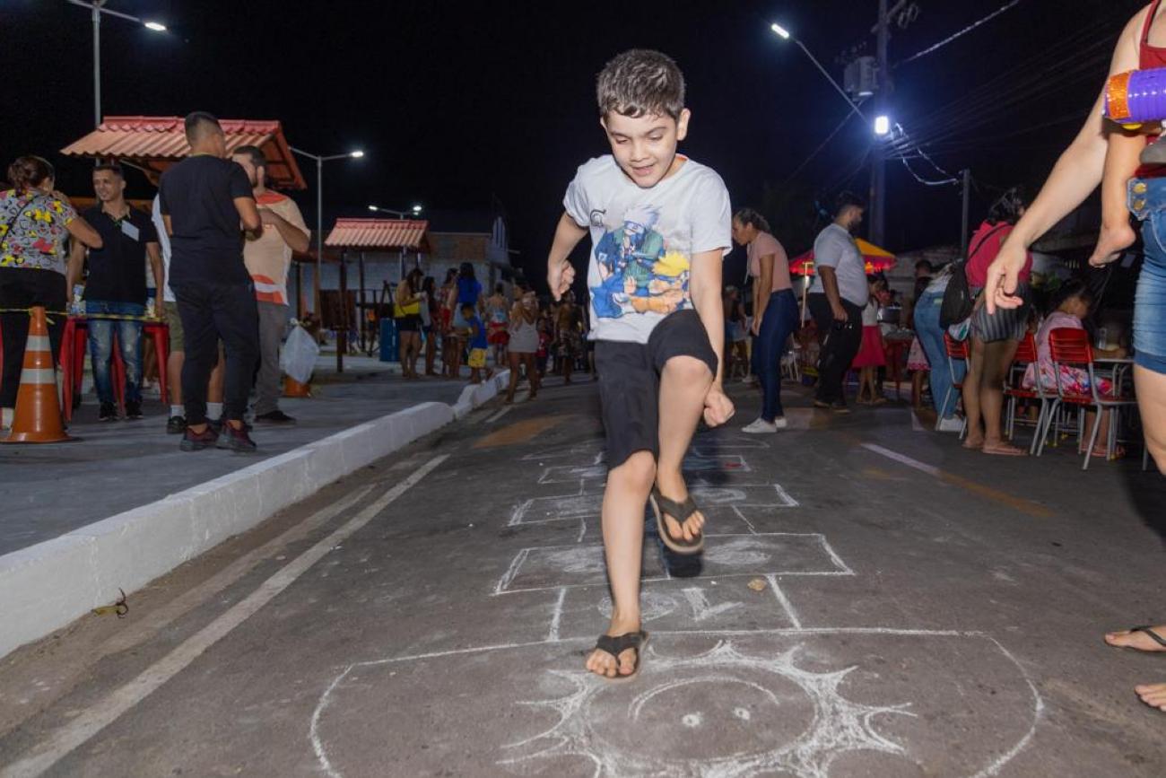 "Voltei a ser criança", brincou a vendedora Milena Silva, na fila para a dança das cadeiras. Ela era uma das animadas participantes das brincadeiras da programação do Rua da Gente, sábado 30, na rua Elcione Barbalho, bairro Santos Dumont. A proposta da atual gestão municipal, realizando este programa diretamente nos bairros, é levar lazer e diversão, além de serviços de saúde, orientações sobre trânsito e meio ambiente, entre outros, promovendo um grande e saudável encontro comunitário.