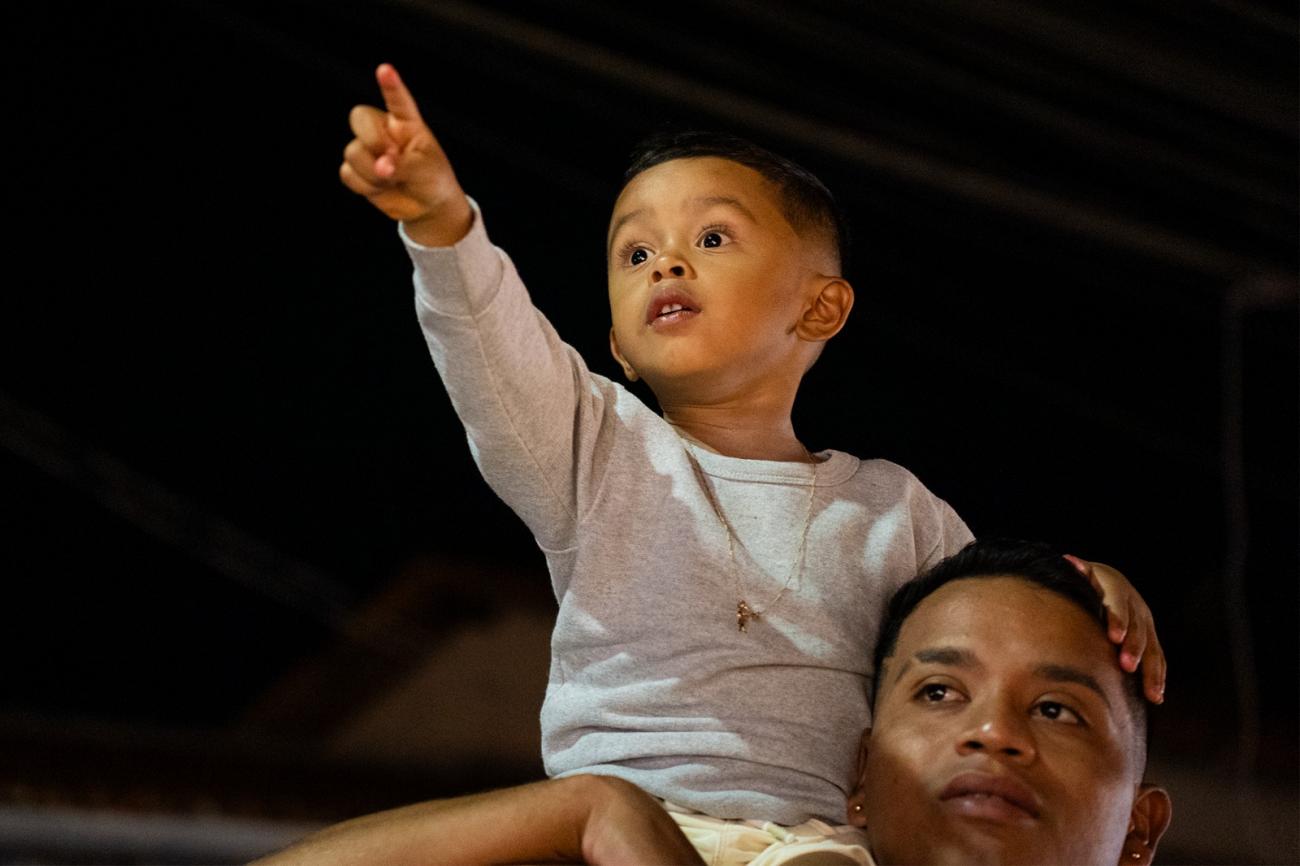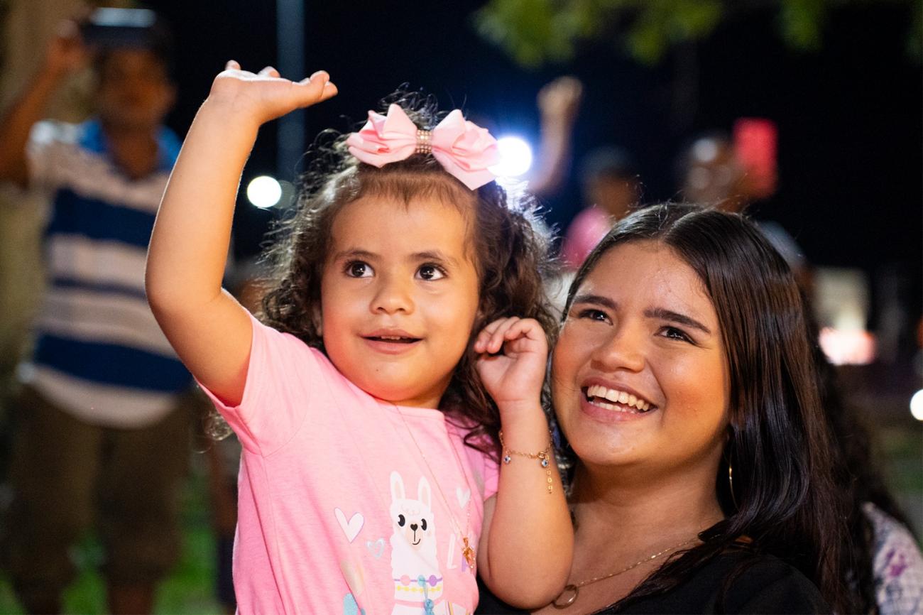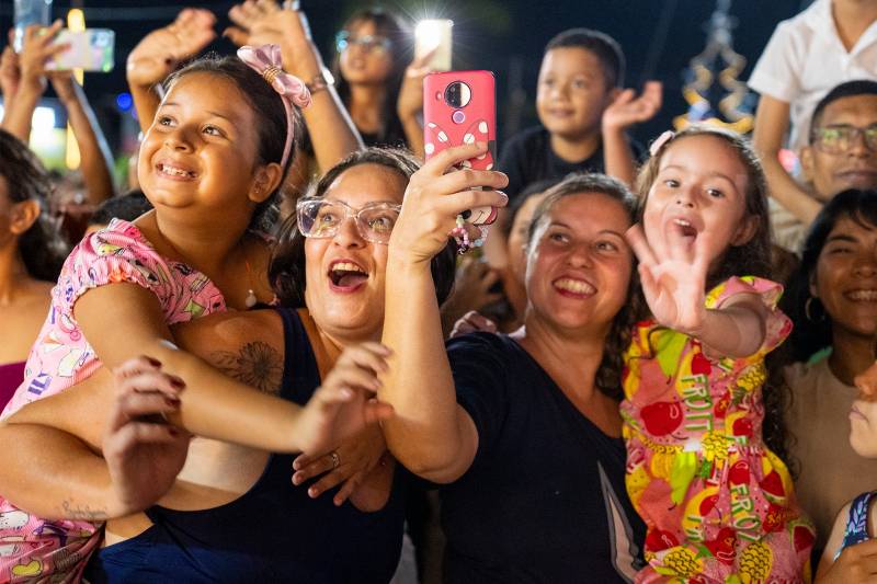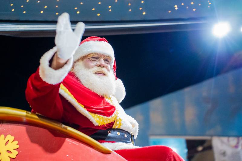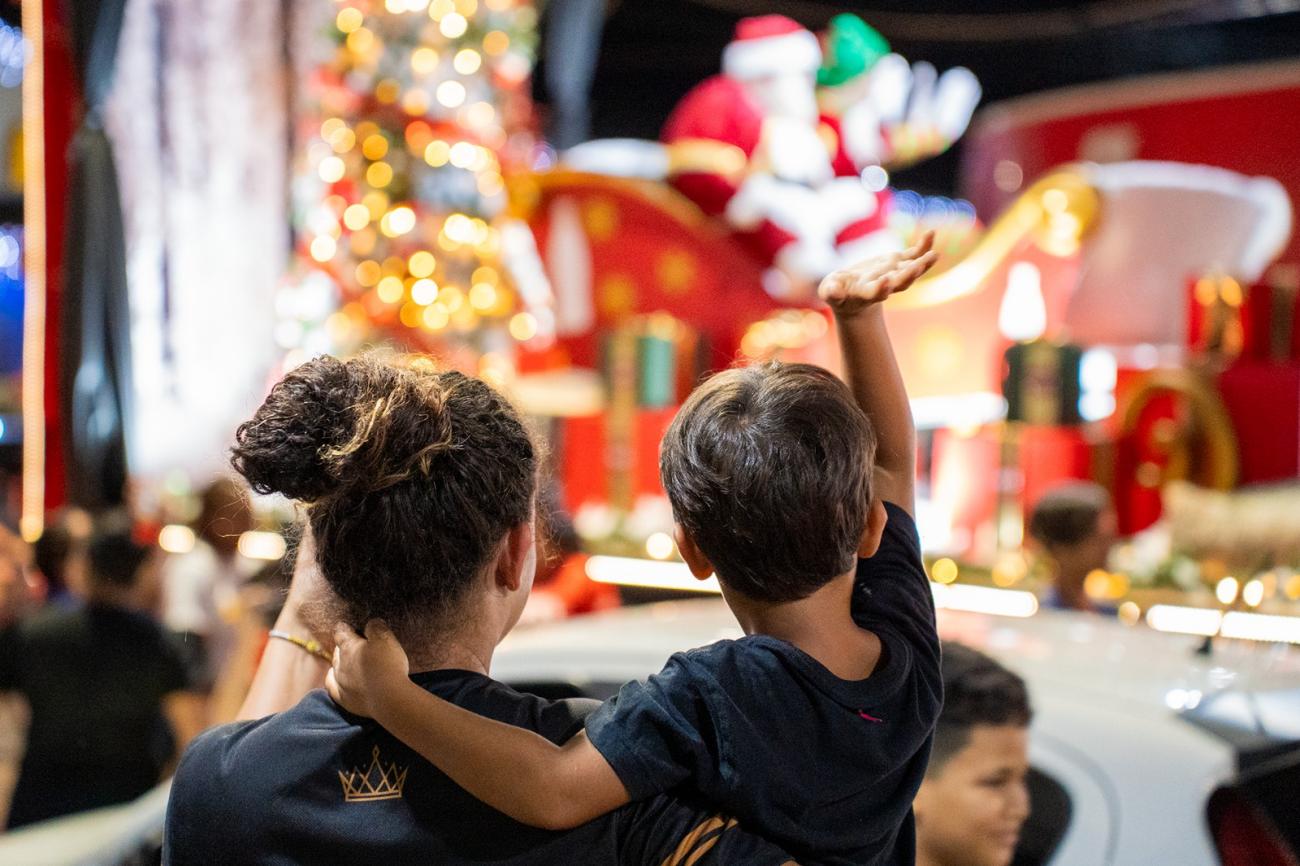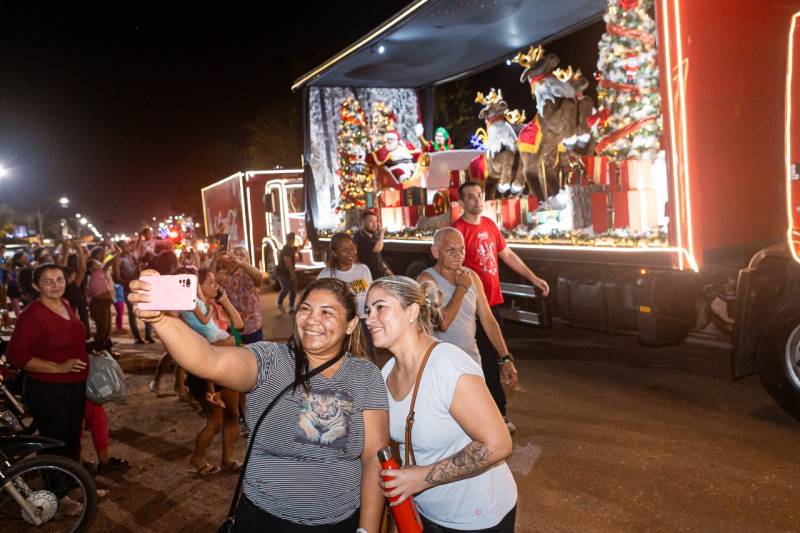As luzes e a música foram se aproximando e, finalmente, ali, bem na frente das crianças, jovens, adultos, idosos e famílias inteiras, estavam os caminhões. No veículo central, simulando uma grande sala de estar, a figura mais esperada da noite: o Papai Noel. As crianças pularam, bateram palmas e acenaram. E todo o trajeto da caravana pelas ruas e praças foi assim, cheio de alegria. "Tudo muito lindo!", elogiou a estudante Karen Luísa.