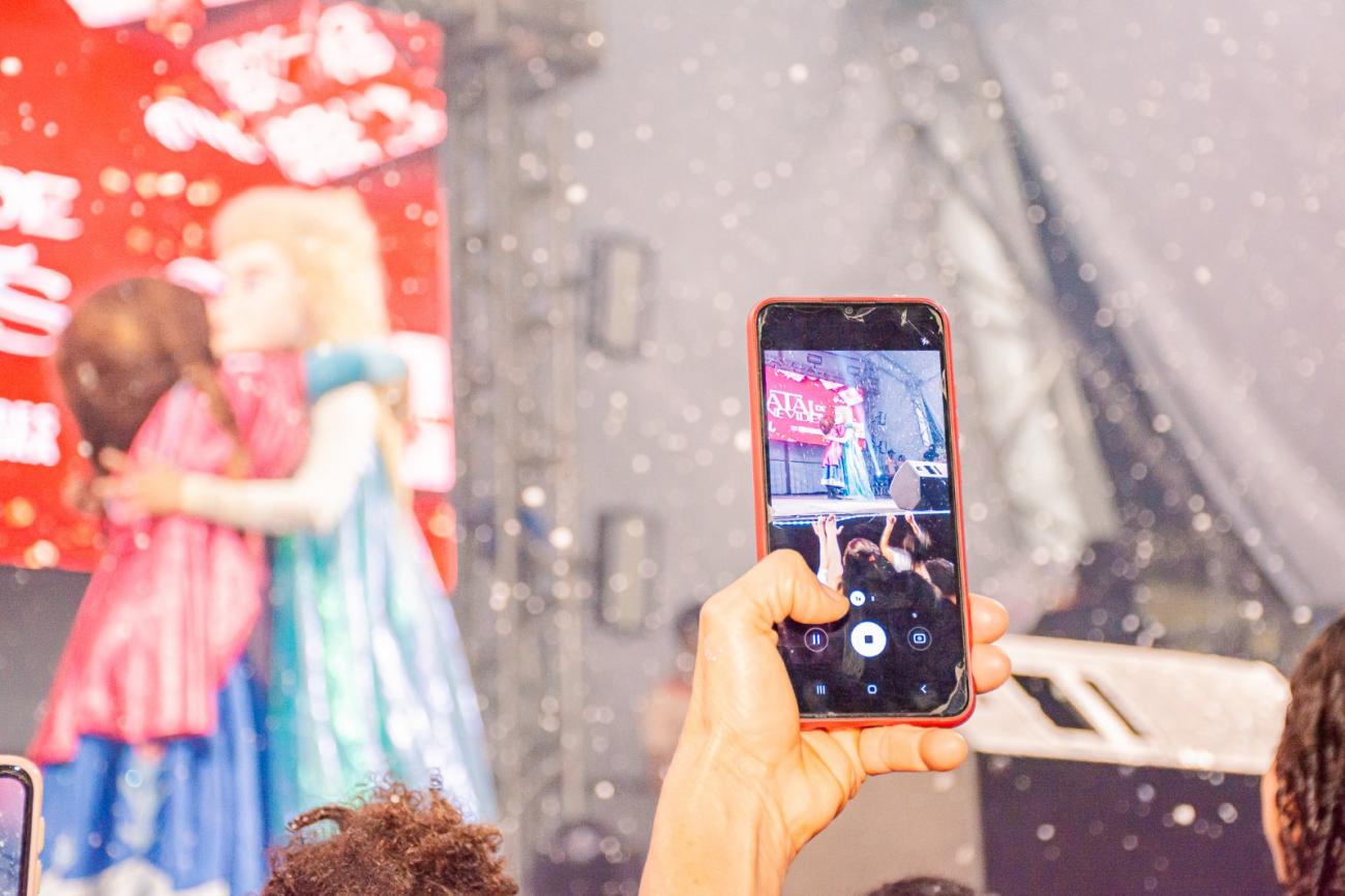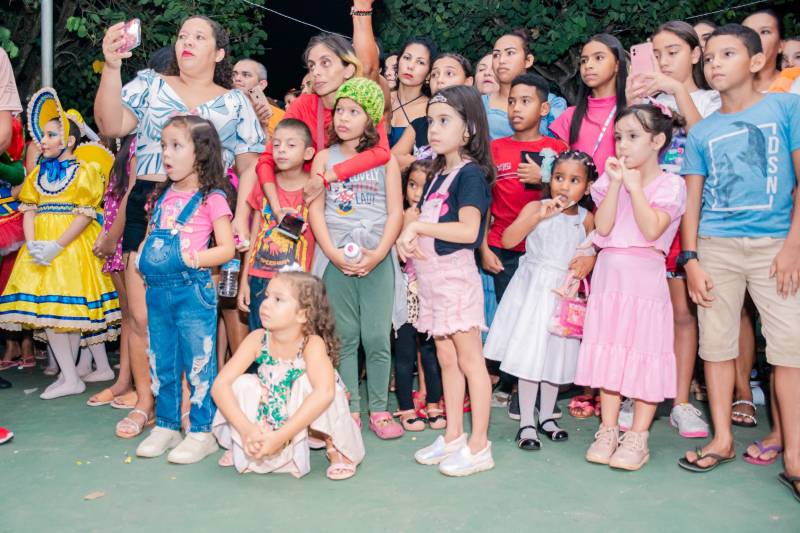 O espaço ficou repleto de famílias que foram vivenciar a magia de uma das mais belas comemorações do ano. "Que noite maravilhosa! Lembrei tanto dos meus pais, de como a gente amava a época do Natal. A família toda junta, o jantar, os presentes. Essa festa toda aqui me trouxe boas lembranças", comentou a professora aposentada Socorro Costa. Felizes também estavam os gêmeos Ágatha e Danilo, 5 anos. Eles foram levados à praça pelos avós Glaucia e Arivaldo Nascimento. "Eu gostei de tudo, da Frozen, do Papai Noel, da Mamãe Noel, da bailarina." E Ágatha foi desfiando com entusiasmo tudo o que viu. Danilo, menos falante, se limitou a dizer que queria mesmo era um presente do Papai Noel.