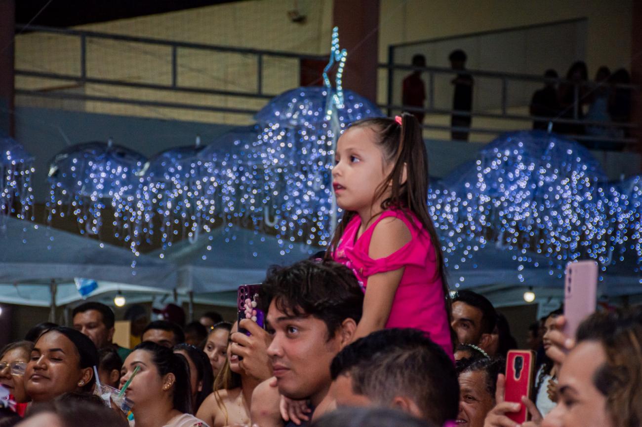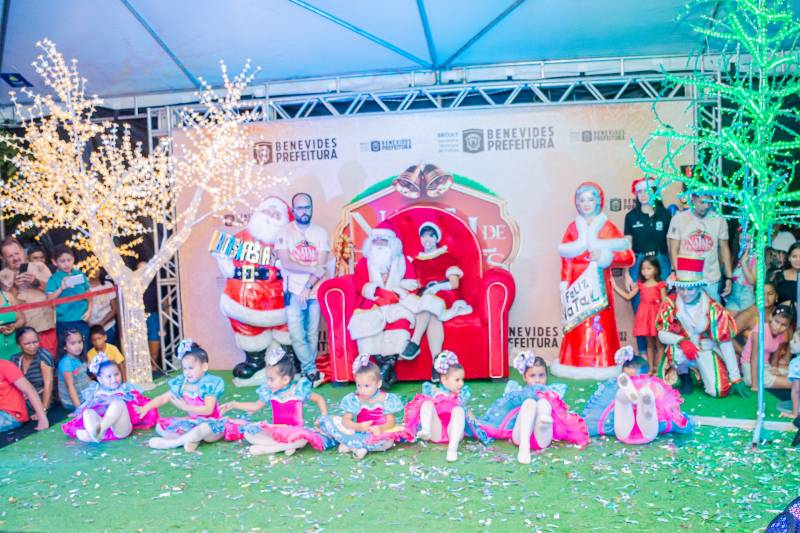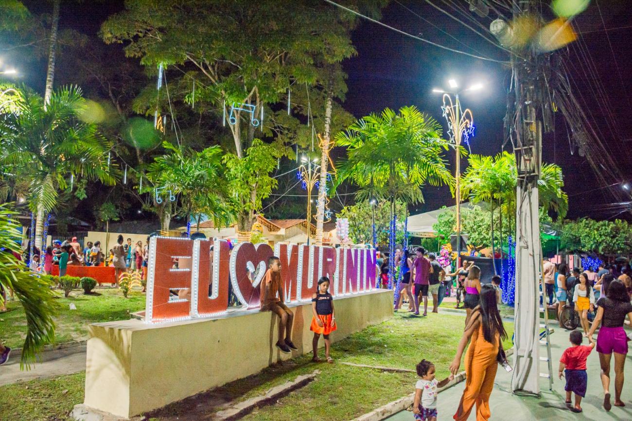 O acender das luzes natalinas na praça central de Murinin, sábado, 16, cumpriu a sequência da programação organizada pela Prefeitura de Benevides.