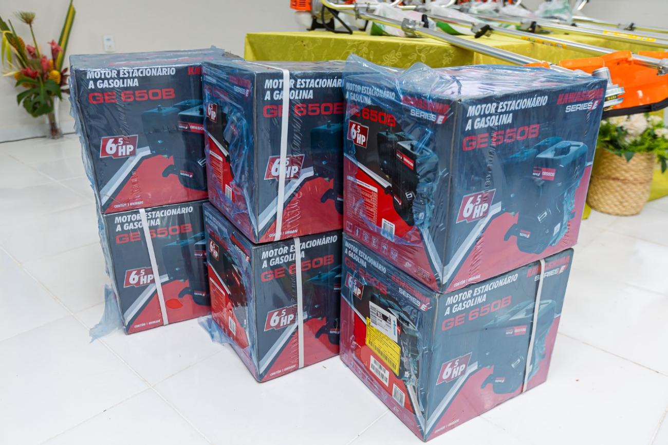 No último dia do seminário, sexta-feira (02), também aconteceu a finalização do ciclo de entregas, iniciadas em 2023, dos equipamentos entregues pelo Pará Rural para produtores locais, foram 11 roçadeiras e 6 motores rabeta.