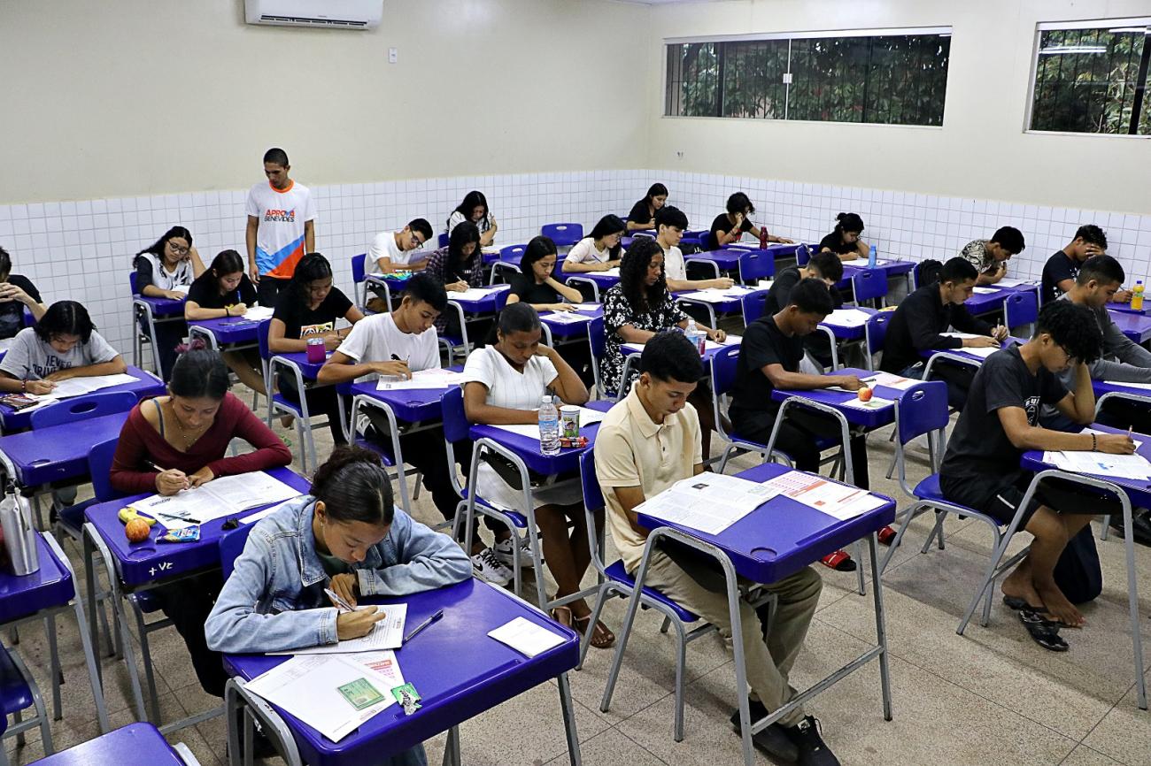 Estudantes fazem a prova do Processo Seletivo para o Aprova Benevides 2024