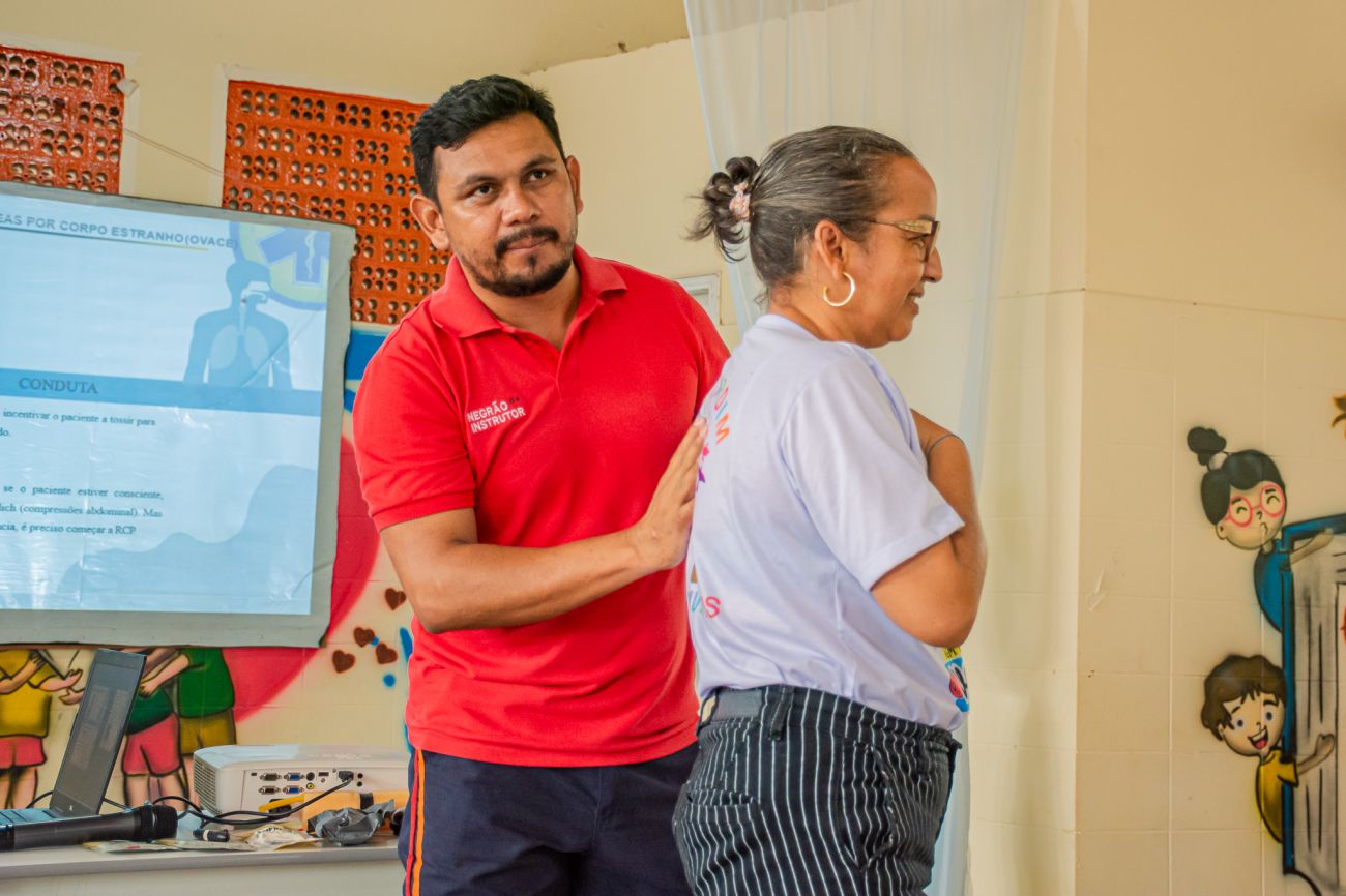 A capacitação de primeiros socorros, que aconteceu na escola Sagrado Coração de Jesus e no CMEI Izaura, foi ministrada pelo profissional Samuel Negrão, instrutor e socorrista do SAMU, que apresentou conhecimentos teóricos e práticos de como salvar a vida de uma criança e de qualquer pessoa que esteja em situação de risco.