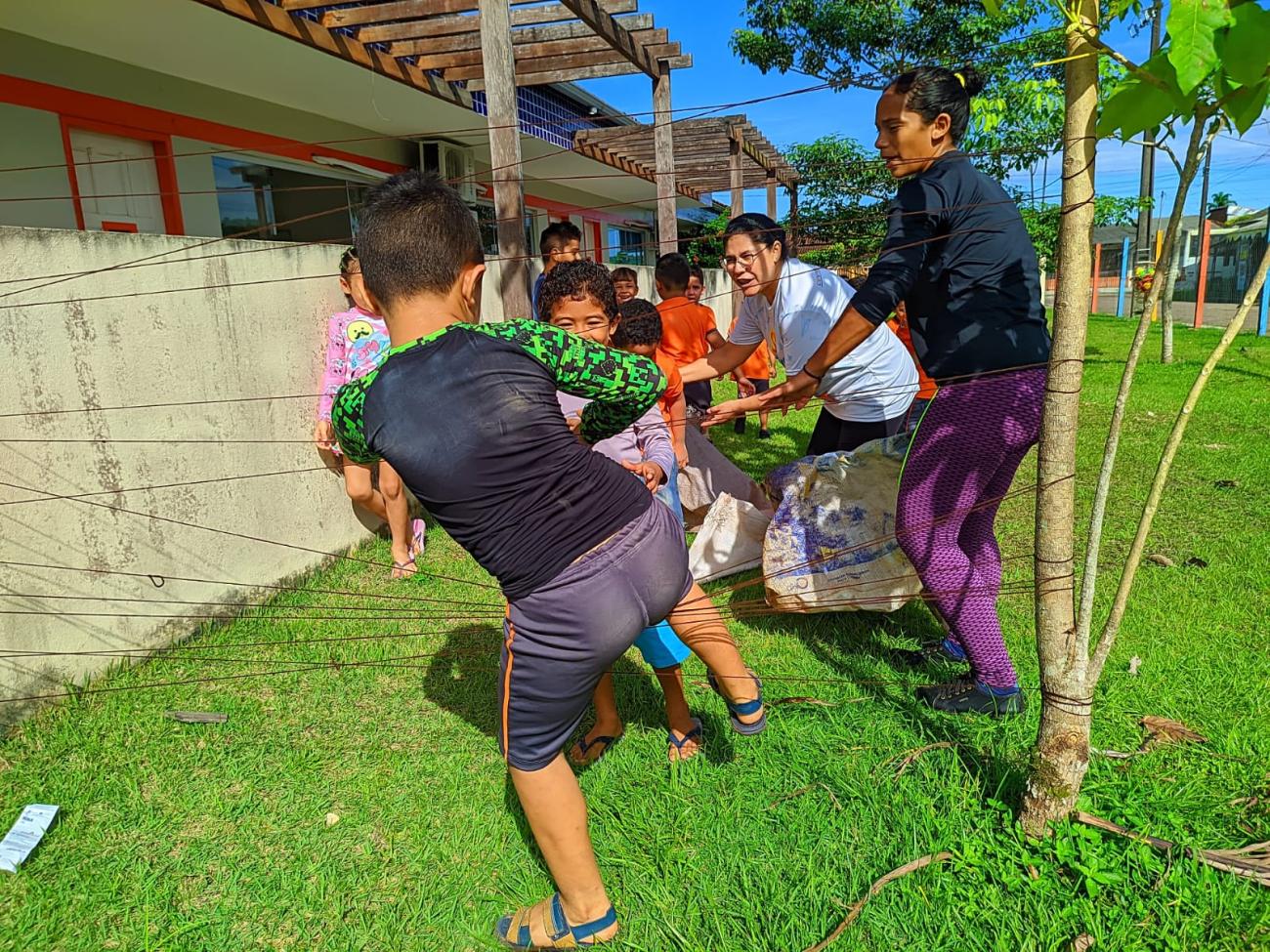 As crianças ocuparam os quintais das escolas, como áreas verdes, pátios naturalizados, para o brincar livre na natureza, estimulando a curiosidade, a descoberta, como direito à livre expressão da arte, aprendendo limites e potências, e também a respeitar a natureza e conviver com as diferenças.