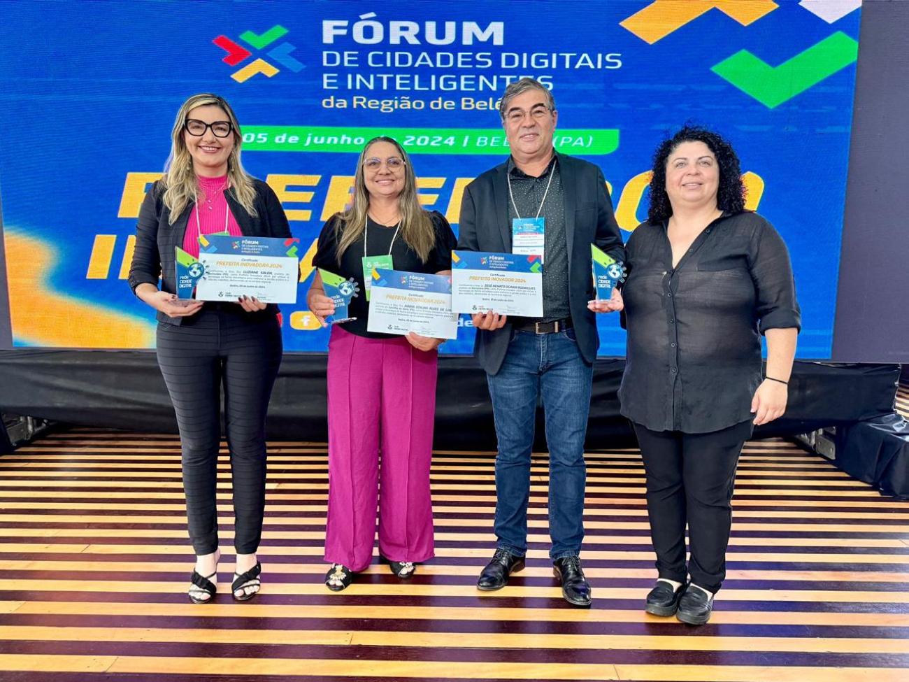 Dezoito prefeitos paraenses foram selecionados pela Rede Cidade Digital (RCD) para receber este título durante o Fórum de Cidades Digitais e Inteligentes, realizado na Federação das Indústrias do Estado do Pará (FIEPA), em Belém. O evento, promovido pela RCD em parceria com a Prefeitura de Belém, através da Cinbesa – Companhia de Tecnologia da Informação de Belém, reuniu prefeitos, gestores, servidores e especialistas. Juntos, discutiram soluções e investimentos voltados para a transformação digital dos serviços públicos.