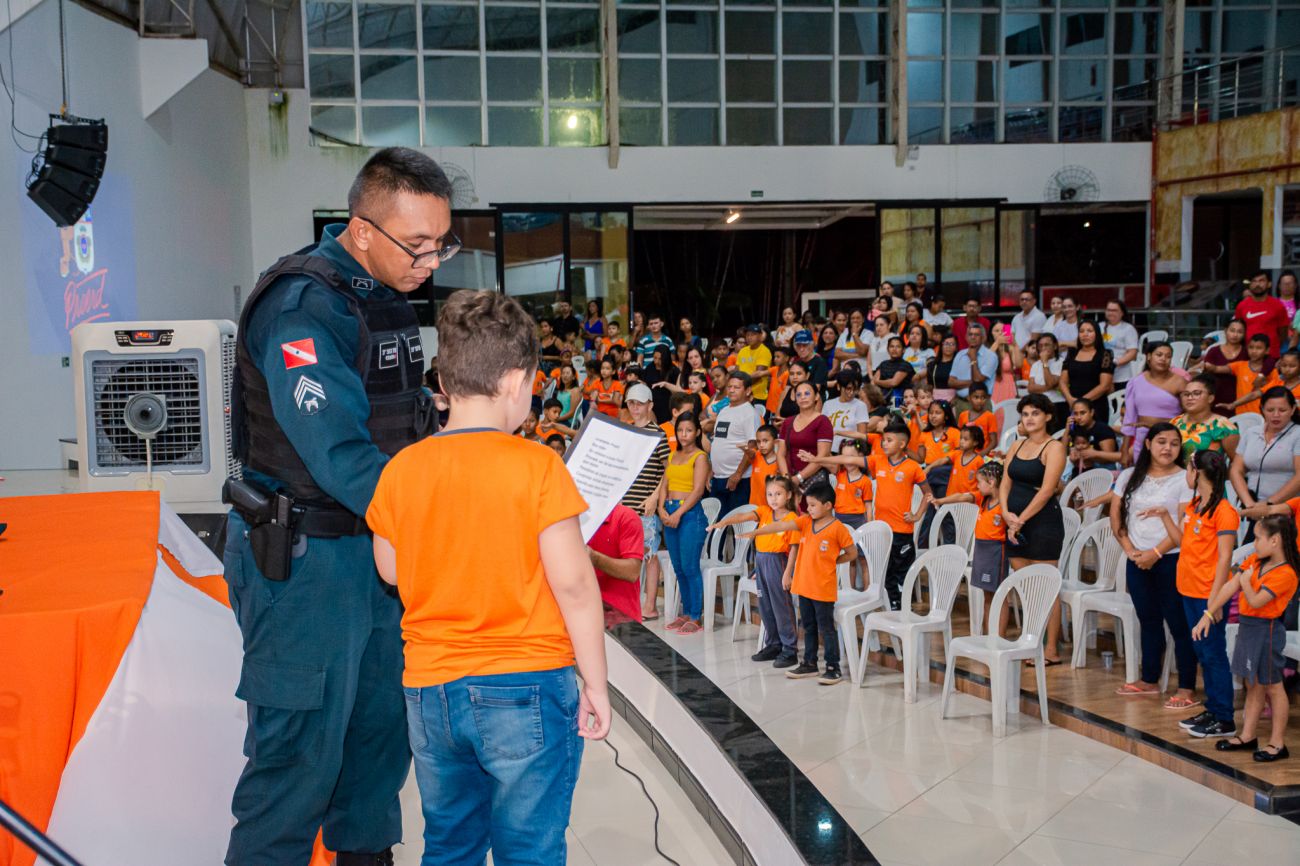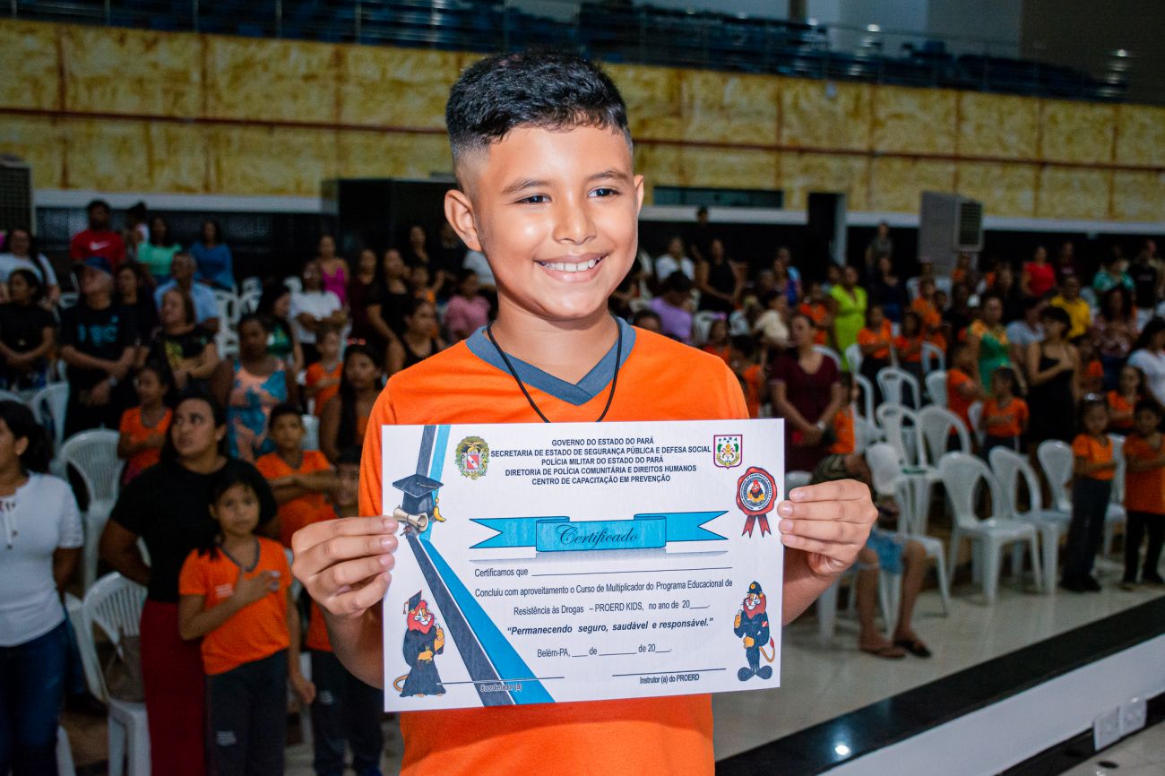Na última quarta-feira, 19, a Prefeitura de Benevides, por meio da Secretaria Municipal de Educação (SEMED), promoveu a formatura das crianças que participaram do curso do Programa Educacional de Resistência às Drogas e à Violência (PROERD), em parceria com a Política Militar.