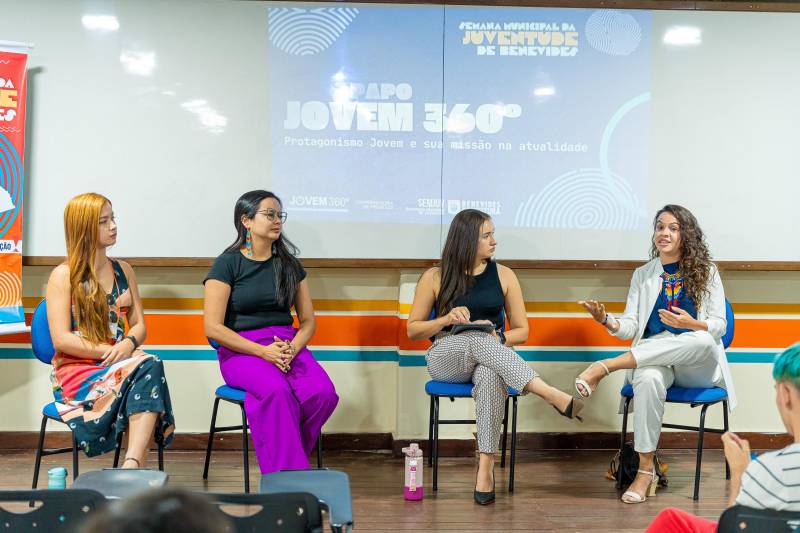 Na abertura, os jovens participaram de um bate-papo 360º com influencers e profissionais de educação que exercem o protagonismo em suas áreas de atuação, envolvendo temas variados, desde a questão ambiental até atuação da juventude e a importância da educação para o exercício do protagonismo entre os jovens. A mesa de debates foi composta por Fernanda Serrão, estudante de pedagogia pela Universidade do Estado do Pará (UEPA) e atuante na equipe do Selo Unicef em Benevides, Carla Braga, diretora de projetos da Cooperativa da Juventude Amazônida pelo Desenvolvimento Sustentável (COJOVEM) e jovem embaixadora da ONU, além de Isabela Nascimento, historiadora e produtora de conteúdo. A mediação do bate-papo 360º foi feita por Arise Lourinho, professora de redação do Cursinho Aprova Benevides.