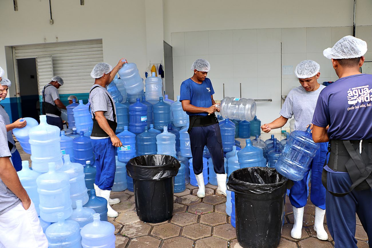 Sete empresas fabricantes de água mineral estão instaladas em Benevides. A qualidade do recurso natural que jorra das fontes é o principal motivo do investimento, como revelou André Gaertner, proprietário da Água Vida, empresa que abriu as portas para a visita dos estudantes na programação de mais esta edição da Jornada da Água.