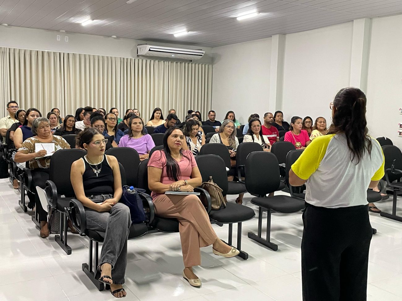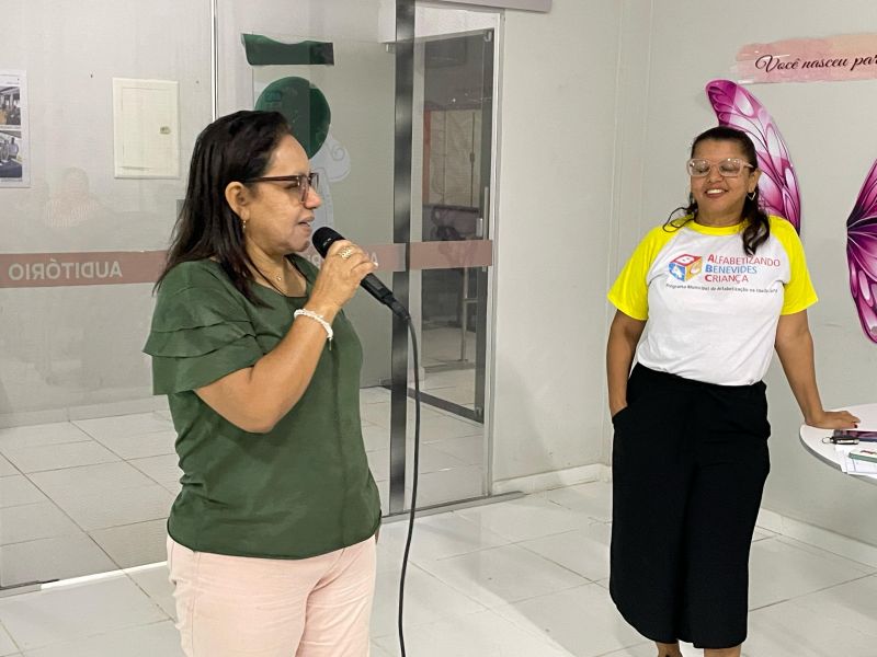 O encontro foi ministrado pelas professoras formadoras Cássia de Lima e Mara Simone, por meio do Programa Alfabetizando Benevides Criança (ABC), que explanaram sobre práticas pedagógicas para melhorar o desempenho dos alunos na alfabetização nas áreas da língua portuguesa e da matemática para desenvolver pensamentos matemáticos.