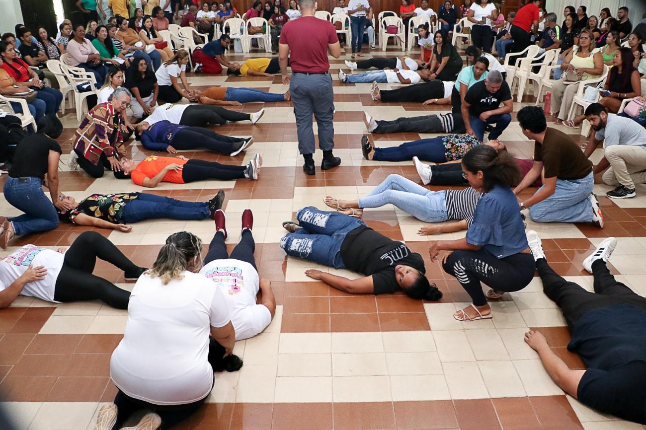 “Estou em mais uma formação de extrema importância para todos nós, até porque ficamos capacitados não só para cuidar das nossas crianças, mas também para a nossa família. Então, conhecimento nunca é demais, pois a qualquer momento, podemos estar diante de uma situação de risco, então, estaremos preparados. Muito obrigada”, relatou Eduarda Sampaio, A.T.E. no Centro Municipal de Ensino Infantil, Florescer.