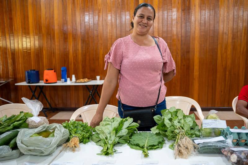 “Hoje é a apresentação dos produtos da merenda escolar no quesito da agricultura familiar. Estamos aqui com os nossos produtos e os nossos produtores fazendo essa amostra, trazendo os produtos para que a gente veja que tem muita qualidade. A importância disso é que abrange várias pessoas, vários segmentos. Eu me emociono, porque vejo a nossa população, os próprios produtores que moram aqui na cidade, que vivem, que têm seu terreno, conseguindo produzir, e sabendo que eles vão ter condições de escoar essa produção. Uma produção de muita qualidade, que podemos falar que é agroecológica, vai para as escolas servir as nossas crianças. Porém, não só as nossas crianças têm que ter acesso a produtos de qualidade, livres de agrotóxicos, nós também precisamos, porque quando comemos alimentos de qualidade, não adoecemos. São muitas pessoas envolvidas, e a SEMED tem todo esse cuidado de nos reunir e fazer um cardápio de muita qualidade, pensando na questão nutricional das nossas crianças, dos nossos professores também, assim como toda a comunidade escolar, e vem a SEMAGRI, conversa com os produtores e faz a assistência técnica, assistência gerencial no campo, dando todas as condições para que eles possam ganhar uma chamada pública e esse alimento de muita qualidade chegue nas escolas. Temos um governo, uma gestão que entende e tem essa sensibilidade. Já estamos no quarto ano e nunca na história do nosso município os nossos produtores vendiam para suprir as escolas com a merenda escolar, hoje nós temos uma gestão preocupada, a nossa prefeita se preocupa e somos bem orientados de todas as formas” relatou a Secretária Municipal de Agricultura e Abastecimento, Edivana Lima.