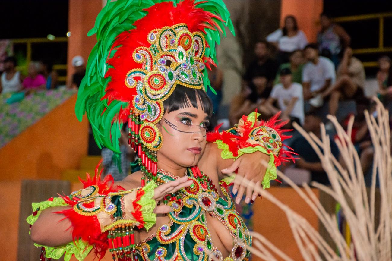Muito colorido, muito brilho, torcida animada, temas criativos e muita competitividade marcaram a primeira noite do Concurso Intermunicipal de Quadrilhas Juninas do Sassaricando 2025