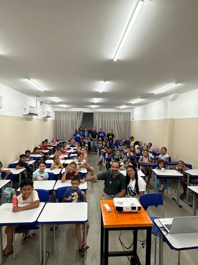 E não faltaram a pipoca (feita na hora) e o suco. Duzentas crianças, na faixa etária de 05 a 12 anos, assistiram aos filmes nas sessões da manhã e da tarde. Em seguida a cada exibição, houve roda de conversa abordando a importância de se proteger o meio ambiente desenvolvendo hábitos saudáveis.