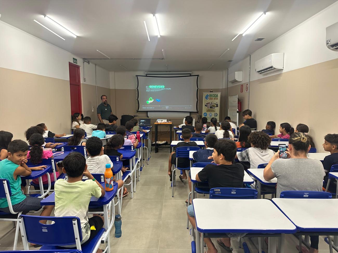 Em continuidade ao circuito Recicla Cine Arte, realizado pela Prefeitura de Benevides e coordenado pela Secretaria Municipal da Gestão do Meio Ambiente e Turismo - Semmat, por meio da Sala Verde, em parceria com a ONG Espaço Urbano, foram promovidas, no dia 10, quinta-feira, 4 sessões de filmes de animação, temática ambiental e curtas paraenses.