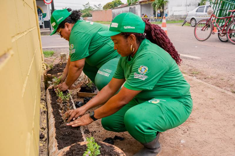 Mais do que transformar a paisagem, a atividade reforçou o sentimento de pertencimento e a importância da união entre poder público, iniciativa privada e comunidade. A presidente da cooperativa, Márcia Souza, destacou o impacto do apoio da Prefeitura. “A Prefeitura sempre esteve aqui nos ajudando, nos apoiando. Sem essa ajuda, não sei o que faríamos. Com o Benevides Recicla, o que a gente ganhava antes do projeto e o que ganha agora multiplicou!”, afirmou Márcia, ressaltando o reconhecimento e a importância do trabalho da cooperativa para o meio ambiente.