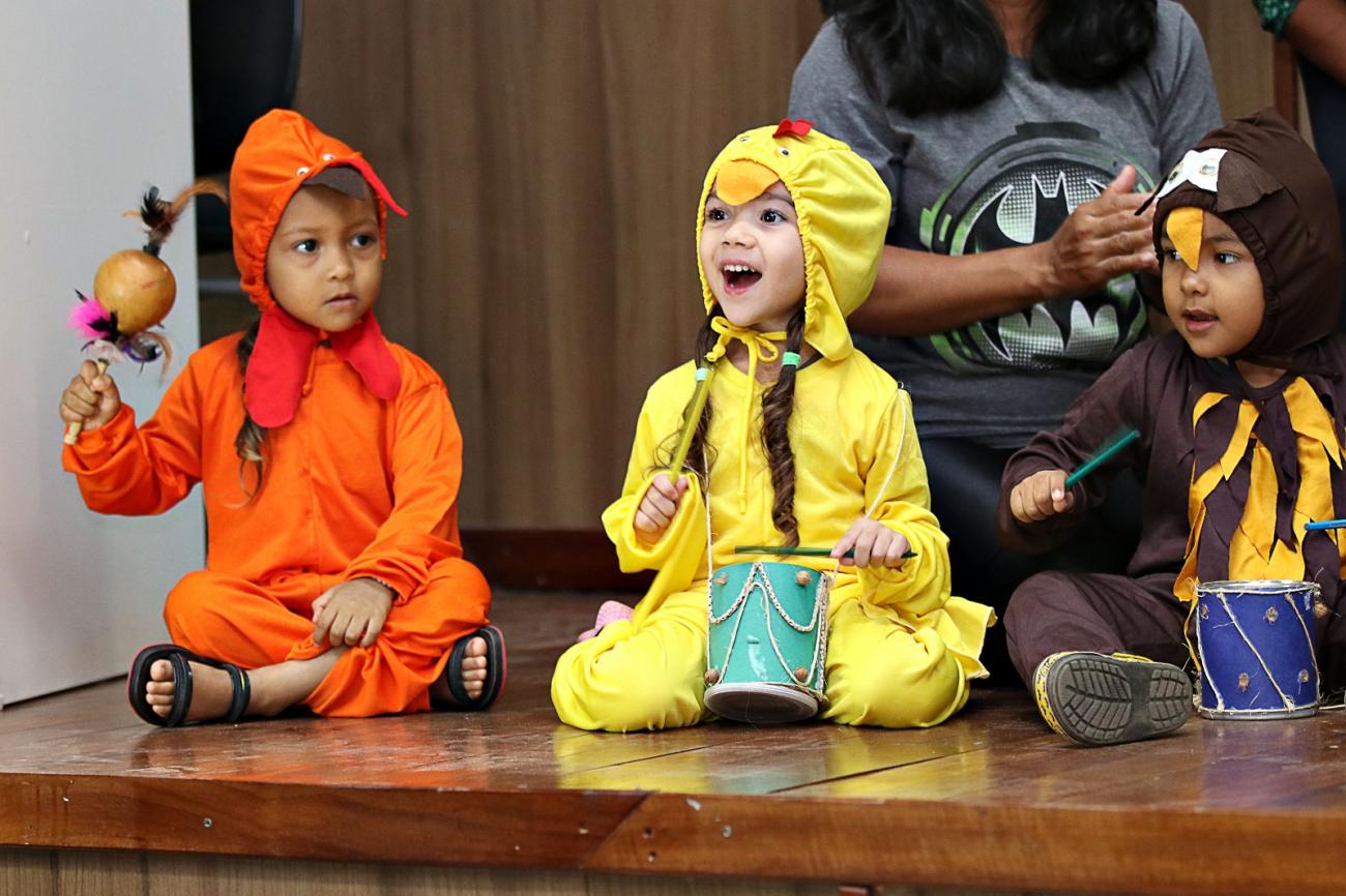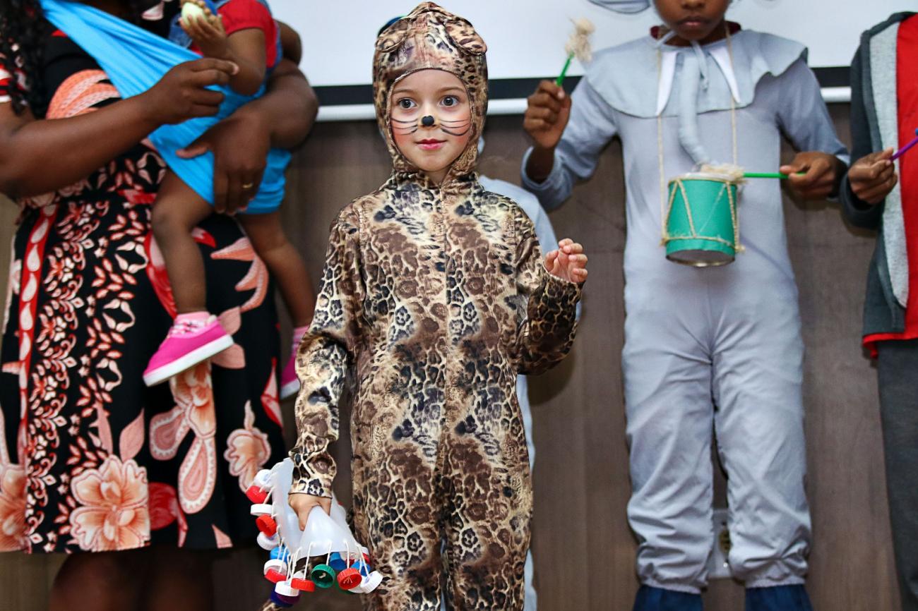 A abertura da Semana do Bebê 2025 teve apresentação do coral das crianças do CRAS- Flores e contou com a presença do personagem Zé Gotinha, que simboliza o cuidado com a vacinação das crianças.