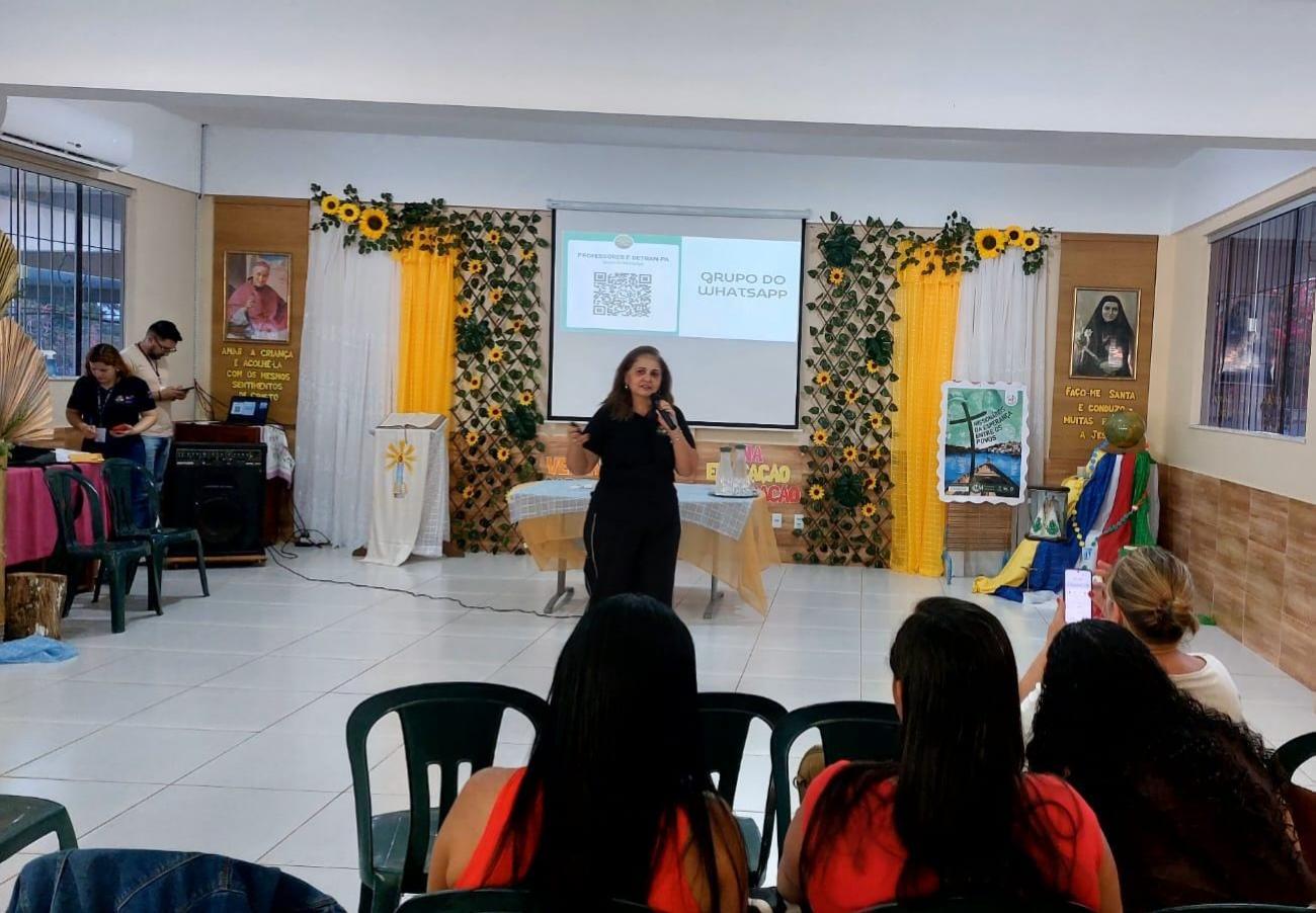 Nesta semana, os professores das Escolas Janete Lopes, Antonina Garcia, Santa Maria Bertilla, CMEI Berço da Liberdade e CMEI Izaura de Queiroz receberam formação sobre educação para o trânsito. Essas escolas fazem parte de um projeto piloto. A formação é parte do Projeto “Educação que Transforma Vidas”, desenvolvido pelo DETRAN em parceria com as secretarias de educação, tanto estadual quanto municipal. Teve início em Belém, sendo estendido para os Municípios de Benevides e Marituba, os três primeiros selecionados para esta primeira fase, e visa capacitar educadores para promover um trânsito mais seguro.