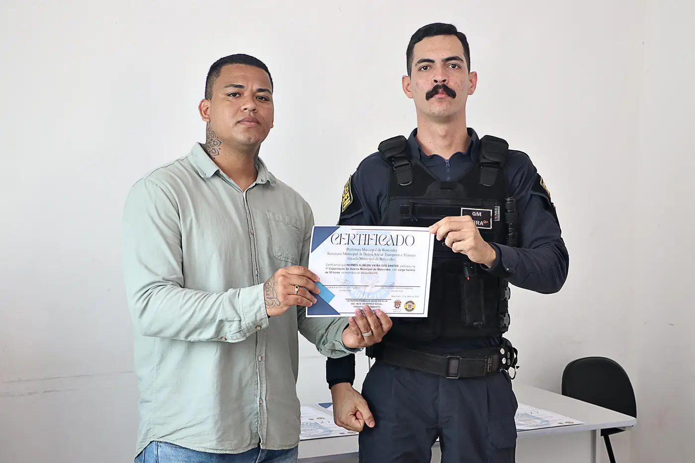 Ainda no eixo da capacitação, a Guarda Municipal de Benevides avançou na qualificação técnica especializada de seus agentes. Representada pelos guardas De Farias e Alcântara, a corporação participou do Curso de Gerenciamento de Armaria e Manutenção de Armamentos (GAMA), promovido pela Secretaria de Administração Penitenciária.