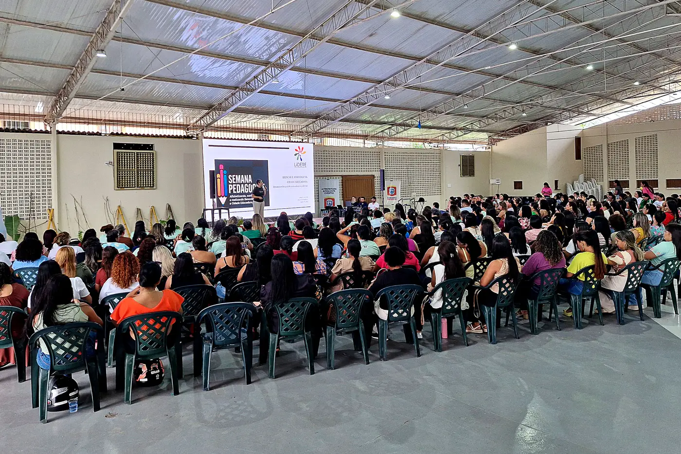 Professores da Educação Infantil (creche, pré-escola, professores suporte e ATEs), bem como Gestores e Coordenadores receberam três dias de formação conduzida pela Educadora Vasti Ferrari, em conjunto com o Professor Dr. Luiz Carlos Ramos na Semana Pedagógica, realizada pela Rede Municipal de Ensino de Benevides.