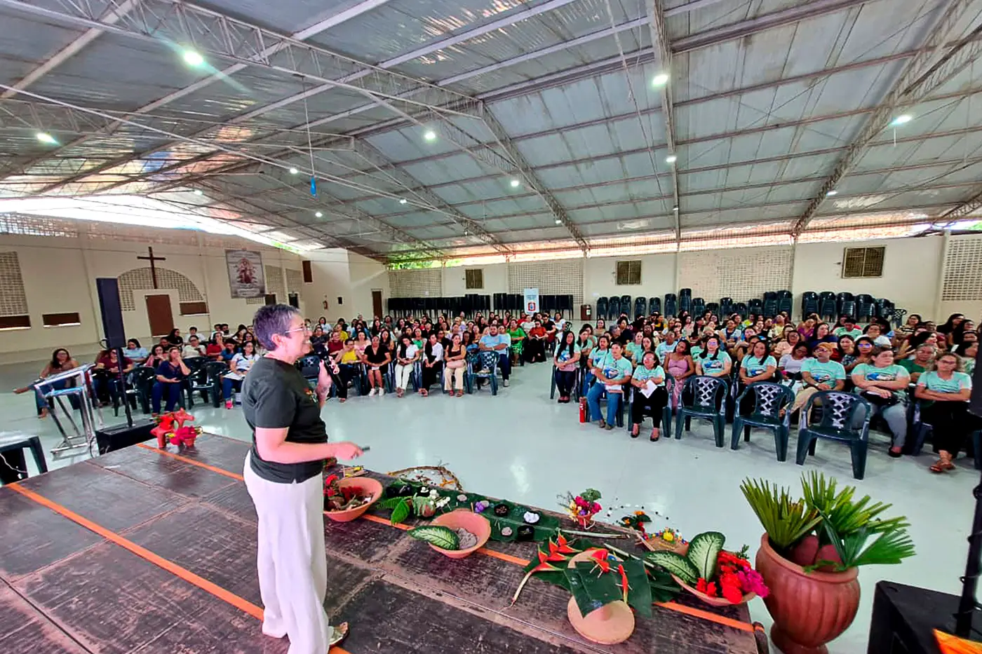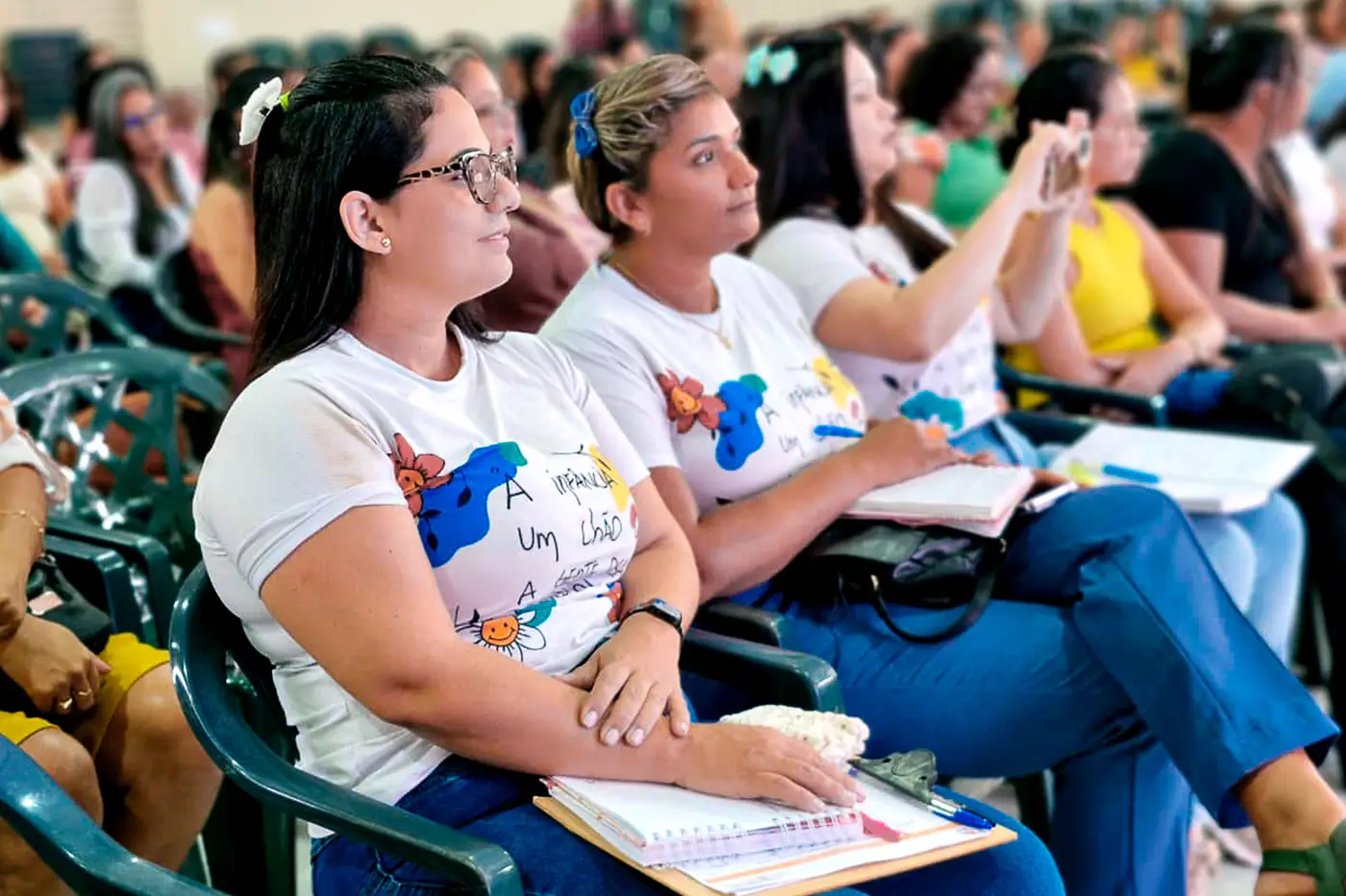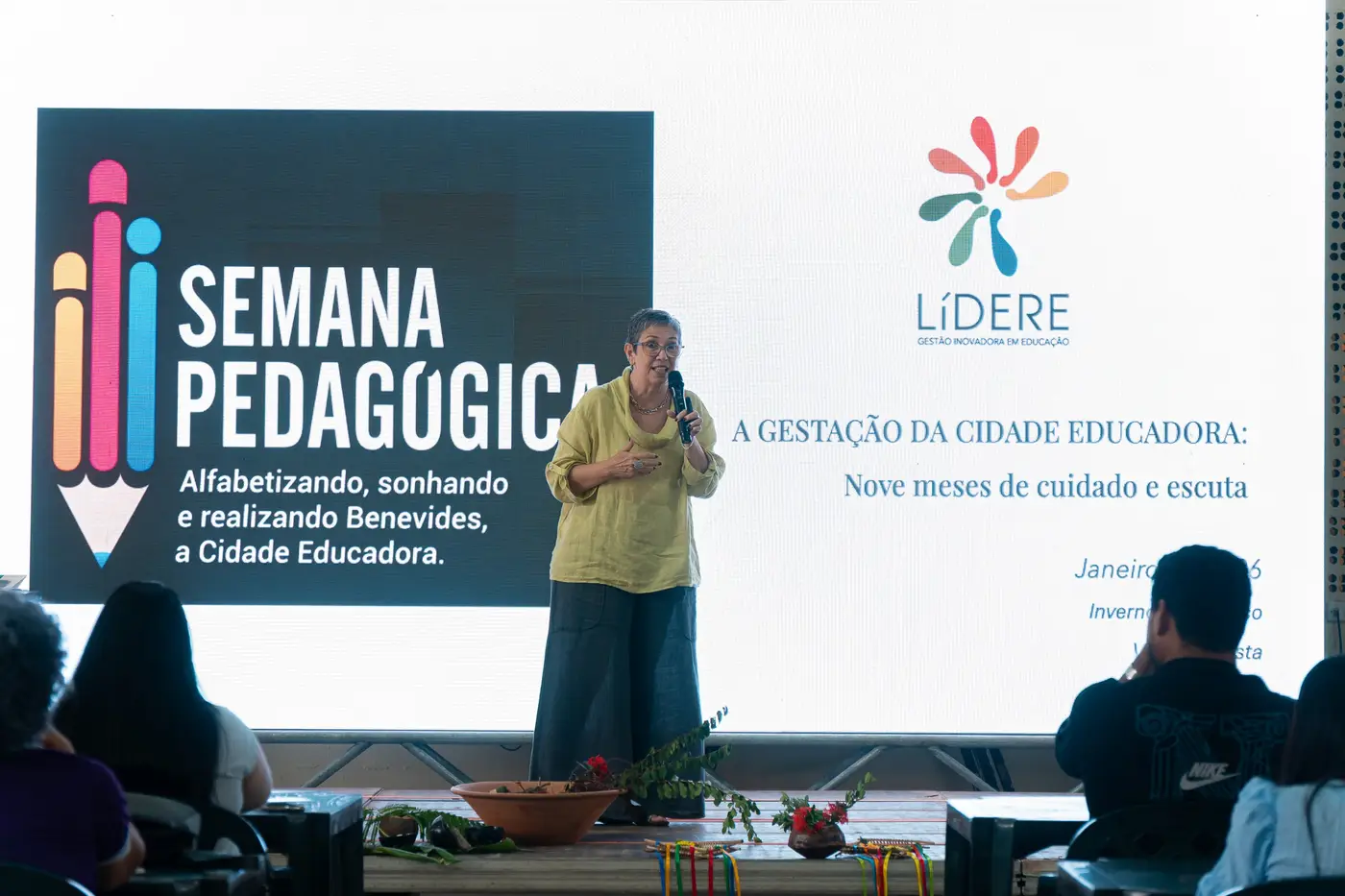 Sob os temas “Brincar e Aprender na Natureza: Uma simbiose perfeita para os bebês, crianças bem pequenas e crianças pequenas”; “Desemparedar para Ler o Mundo e as Palavras”, e “A ‘Gestação’ da Cidade Educadora – nove meses de cuidado e escuta”, os educadores do Município de Benevides, vivenciaram três manhãs de muitas trocas de sabedorias. O evento abrangeu temáticas relacionadas às infâncias, tendo foco na relação entre criança e natureza e seus impactos no desenvolvimento delas, uma vez que “a primeira infância é o momento mais importante do desenvolvimento humano”, como aponta Vasti.