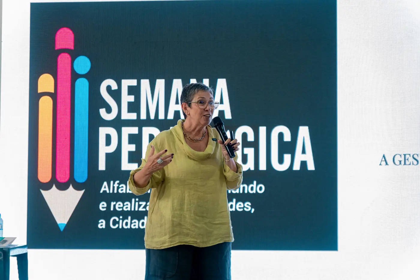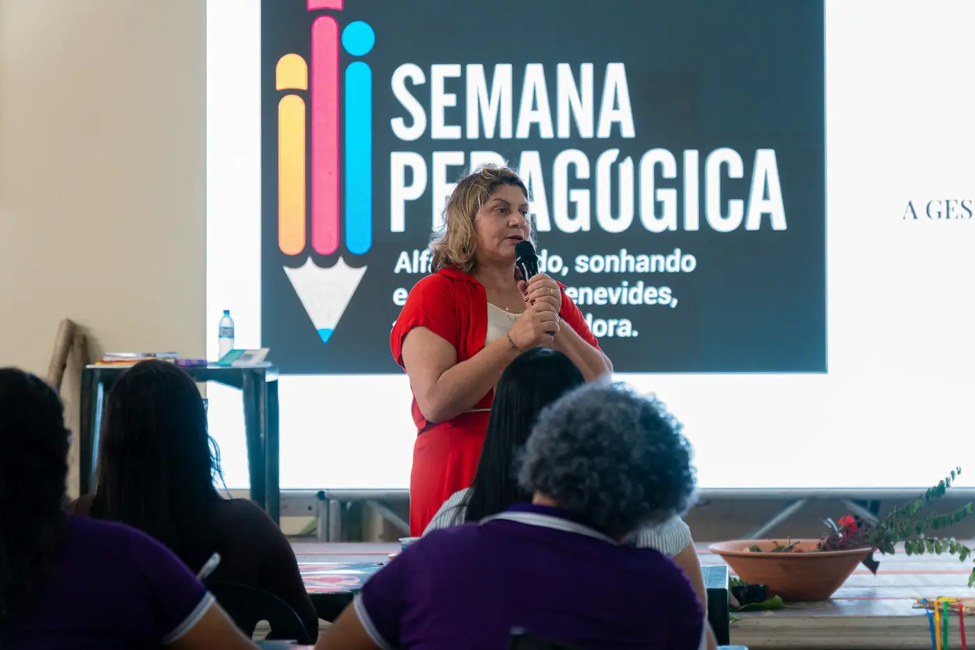 Os gestores e coordenadores receberam treinamento com enfoque na escuta ativa da comunidade escolar, como também na elaboração do Projeto Político Pedagógico (PPP), reforçando que o olhar da equipe gestora direciona o olhar de todos os educadores. Vasti Ferrari, também, defendeu que é essencial que as crianças possam aprender nas áreas de recreação livre da escola, e em contato com o meio ambiente.
