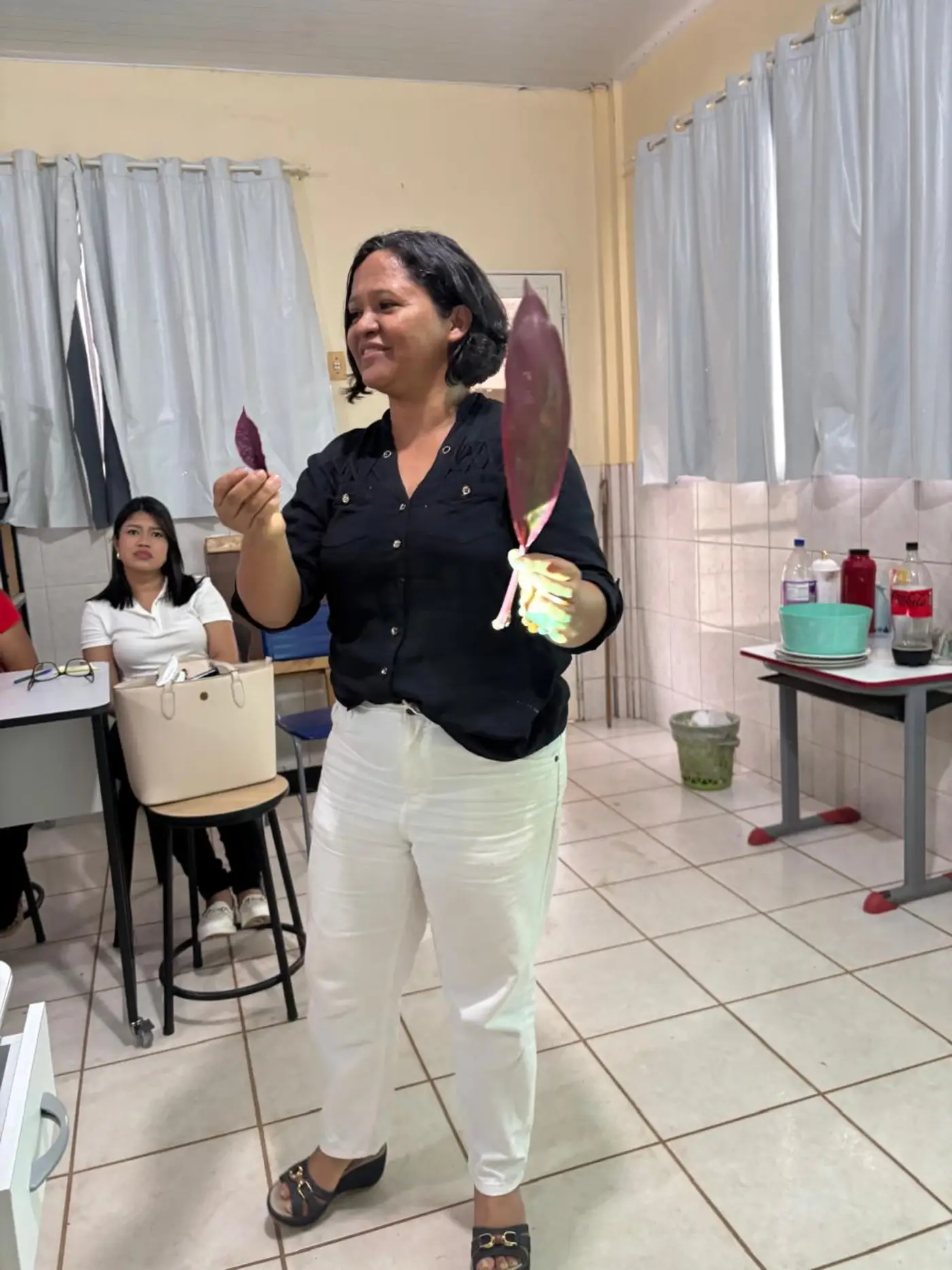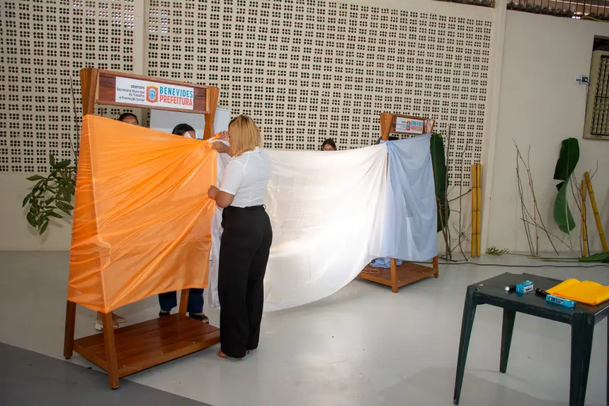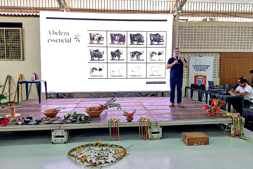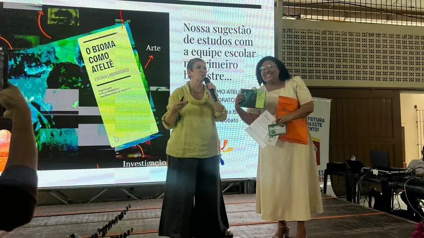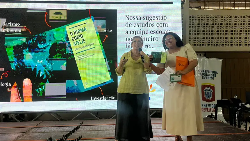 Reconhecendo o título de “Benevides: Cidade Educadora”, ao longo do treinamento, foram discutidas estratégias de desemparedamento nas escolas, abordagem criada pela palestrante, que trouxe consigo uma larga bagagem de ideias que contribuem para a ampliação desse contato entre criança e natureza, citando a elaboração de atividades com utilização de materiais naturais, como elementos da flora local e sementes, pedras lisas, argila natural, gravetos, para realização de propostas como artes efêmeras e também teatros de luz e sombra. As sugestões pedagógicas deram espaço para que os professores pudessem discorrer sobre suas práticas em sala, agregando os novos aprendizados para futuras aulas, além de aperfeiçoar práticas que já são parte de suas realidades, resultando em relatos que impulsionaram novas possibilidades. Ao desemparedar a formação, Vasti também realça que as propostas artísticas devem ser vistas como processos de descoberta e não apenas como resultados estéticos finais. “Não há aprendizagem criativa sem professores criativos”, afirma Vasti, ao defender a grandiosa importância do brincar no dia a dia escolar.