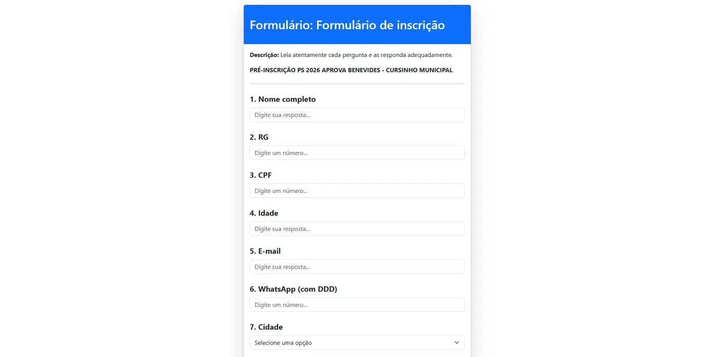 ACESSE E PREENCHA O FORMULÁRIO DE INSCRIÇÃO - PROCESSO SELETIVO APROVA BENEVIDES 2026 (CLIQUE AQUI)