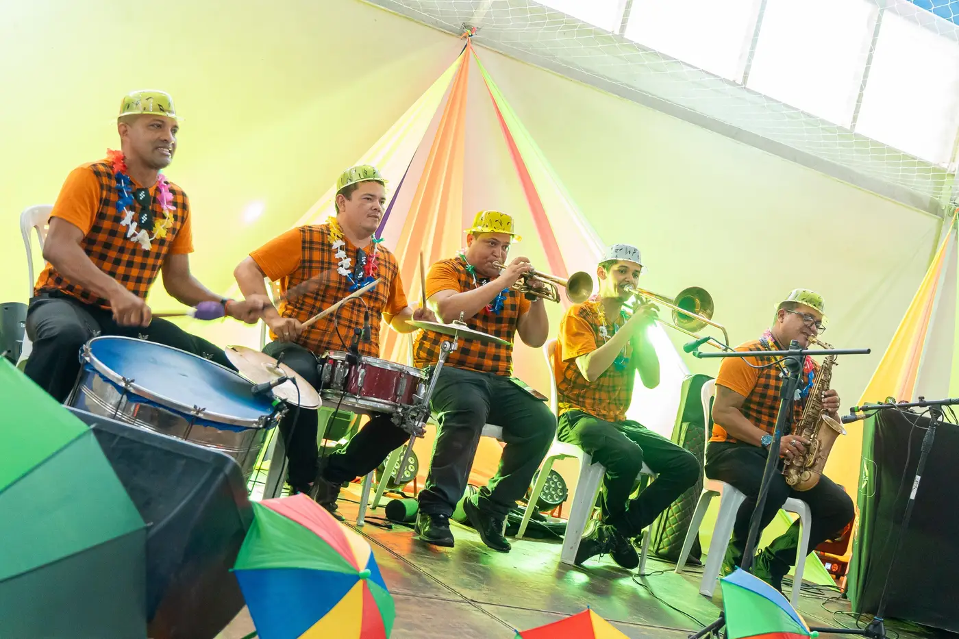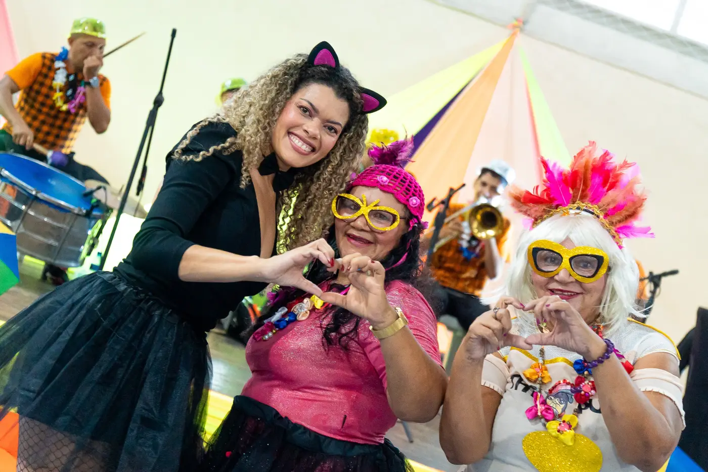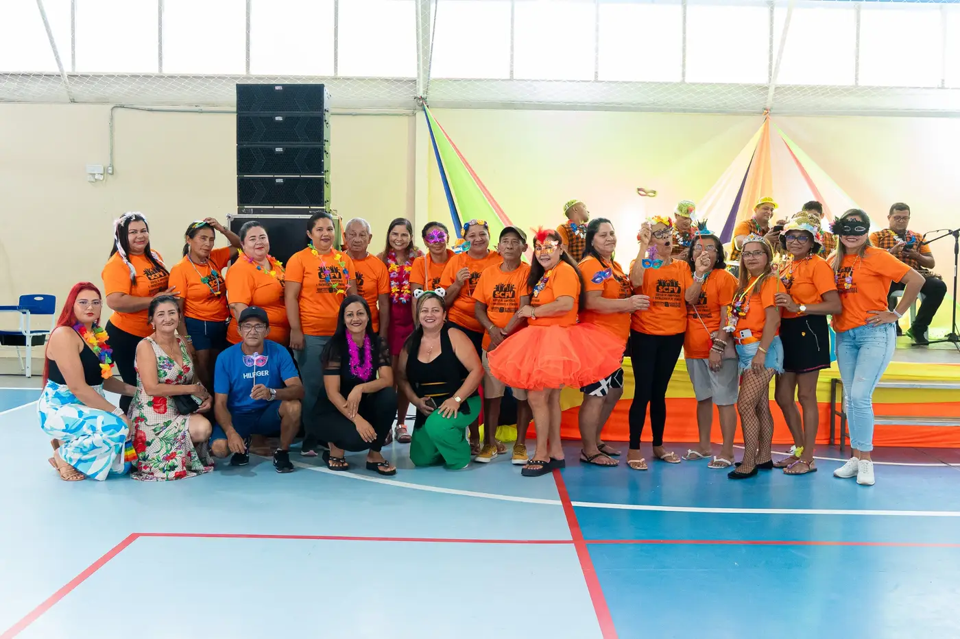 O baile, na quadra da Usipaz, foi direcionado para os participantes dos projetos mantidos pelos Centros de Referência da Assistência Social - CRAS. A animação da bandinha de fanfarra Los Viegas, com muita marchinha, frevo e samba, não deixou os foliões arredarem os pés do salão e o DJ Léo Mix e o cantor Ciro Marcelo completaram o ritmo da festa, tocando, além do balancê do carnaval, forró e pop.