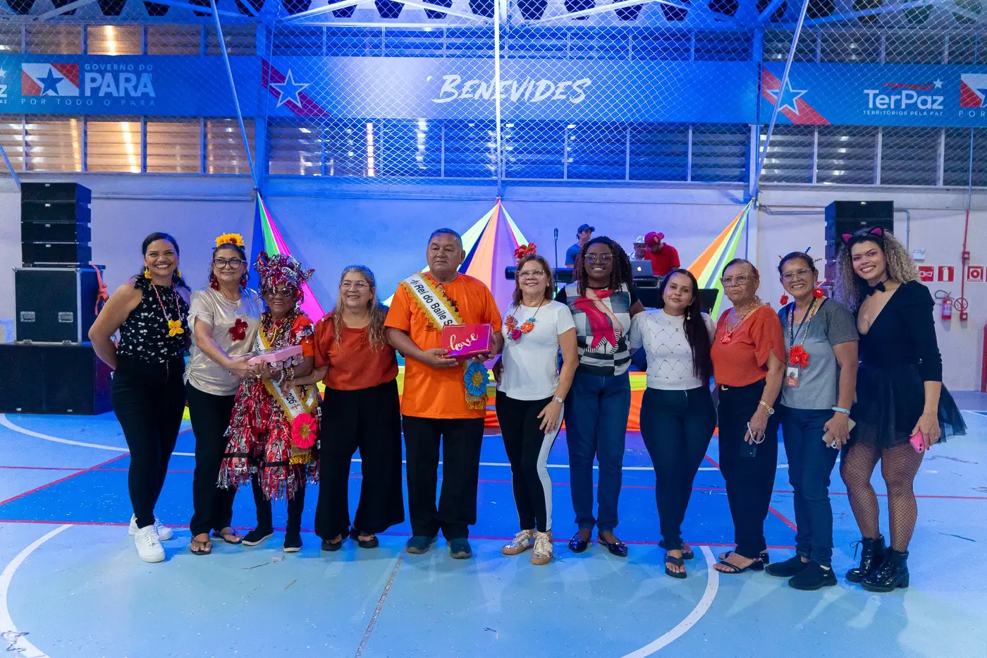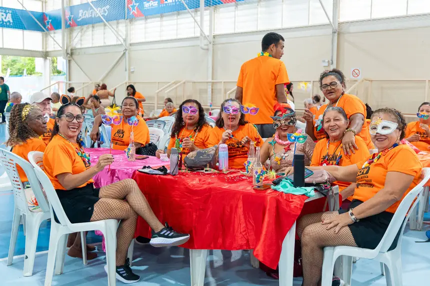A turma dos 60 + caiu na folia no baile de carnaval da Melhor Idade promovido na tarde da quinta-feira, 12, em uma parceria da Prefeitura de Benevides com a Usina da Paz Murinin.