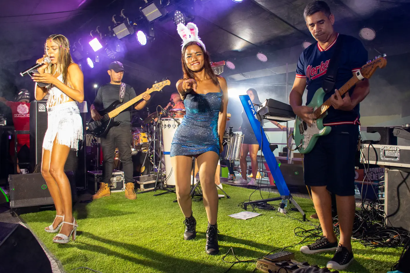 A noite contou com o balanço contagiante da Banda Boas de Farra, que trouxe um repertório atualizado e cheio de piseiro, fazendo o público dançar bastante. A banda literalmente sacudiu a galera!