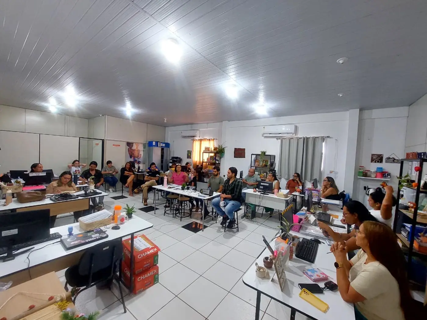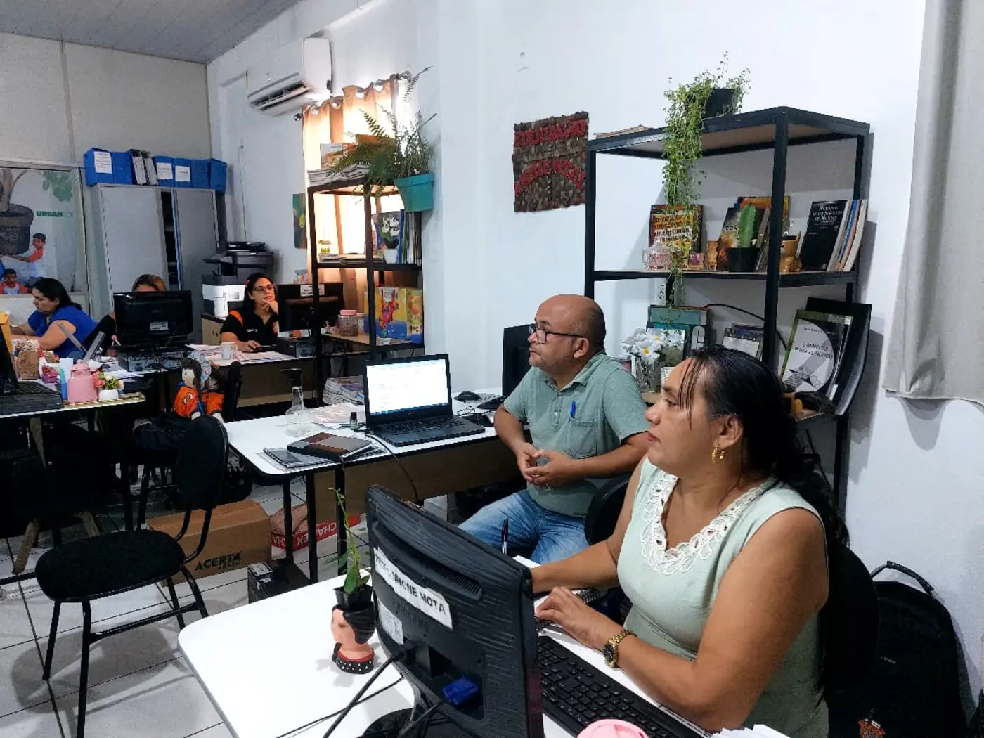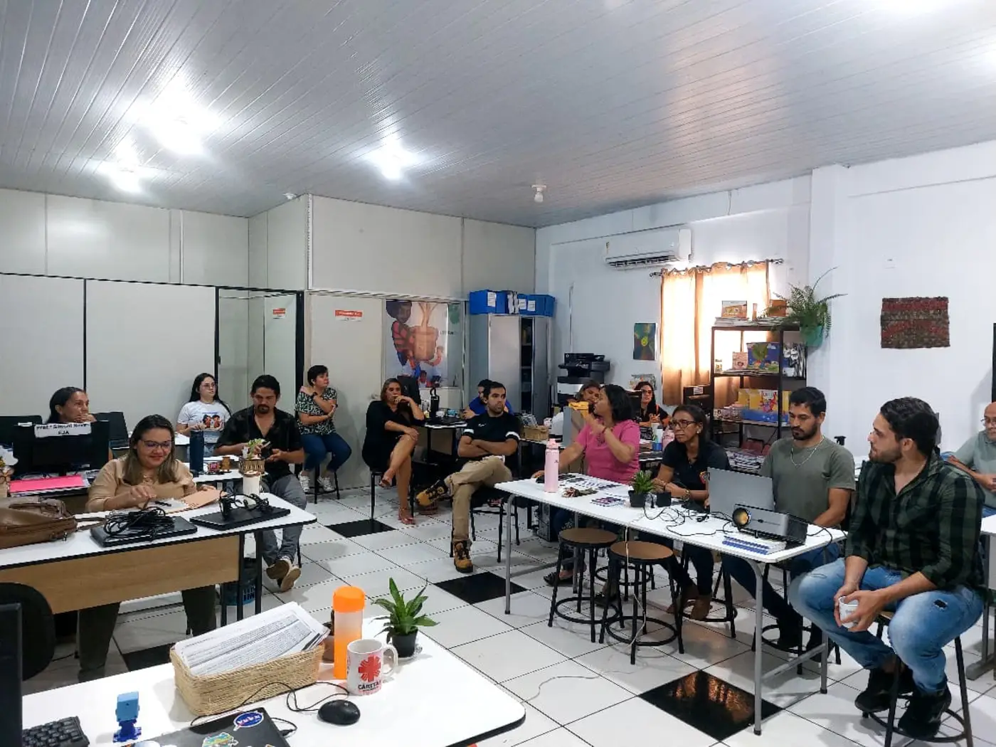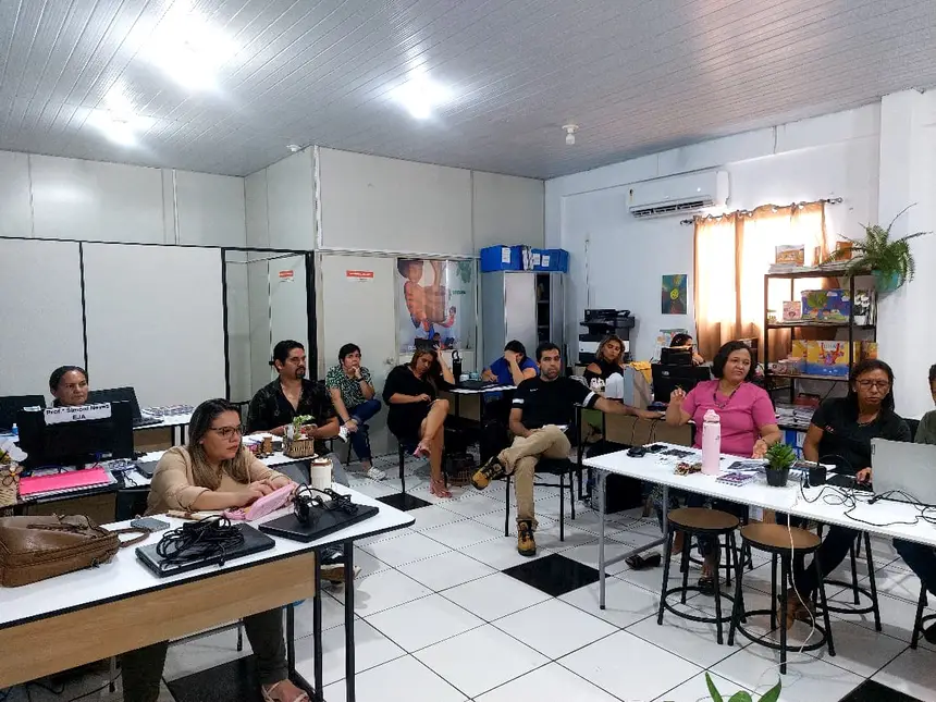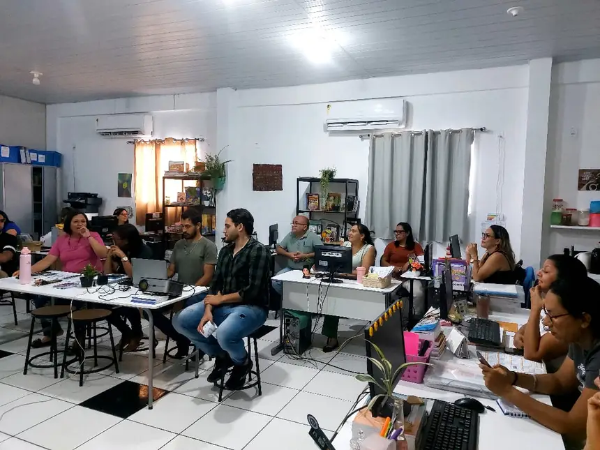 No período da tarde, a formação se estendeu na SEMED para o grupo de participantes, com o objetivo de apresentar o Projeto de Educação Ambiental para a Rede Municipal de Ensino de Benevides, com base na Lei nº 9.795/1999 (Art. 1º) “Processos por meio dos quais o indivíduo e a coletividade constroem valores sociais, conhecimentos, habilidades, atitudes e competências voltadas para a conservação do meio ambiente.”