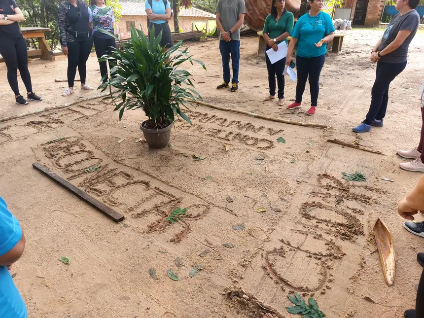 Sob o tema “Benevides: Território de Aprendizagem – Tecendo Redes de Sustentabilidade, Identidade e Clima”, a experiência formativa foi baseada na proposta pedagógica de Sentir, Refletir e Agir. Este momento foi vivido na prática pelos participantes, entrelaçando os sentimentos imergidos do homem com a natureza.