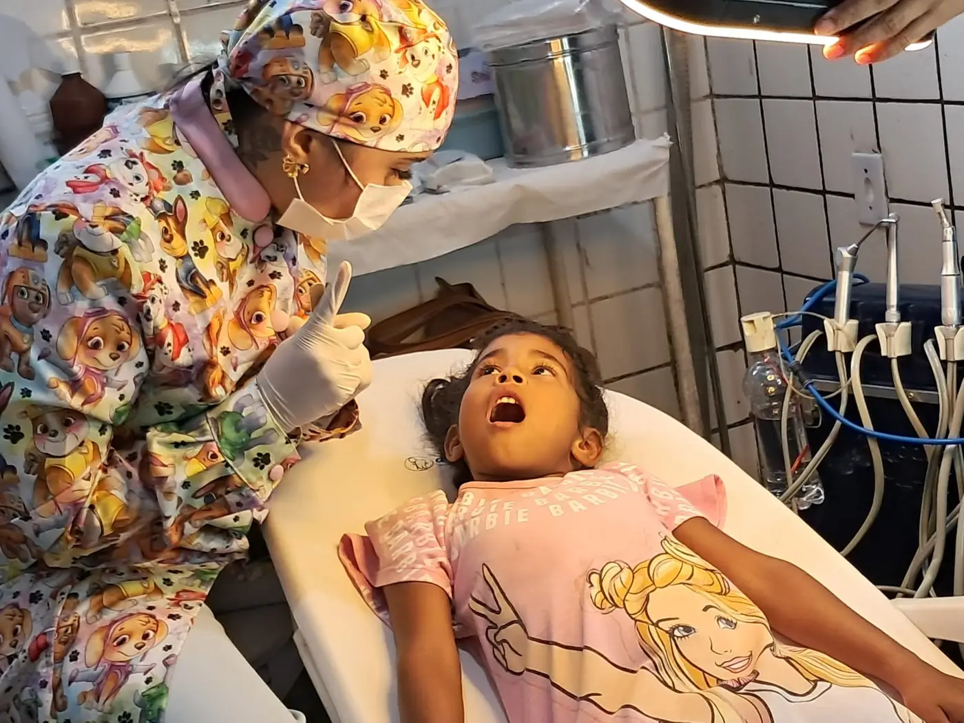 Em Paricatuba a mobilização aconteceu na Unidade de Saúde da Família (USF) e na Escola Municipal de Educação Infantil (EMEI) Governador Alacid Nunes, localizada na estrada de acesso à Ilha de Mosqueiro. O objetivo central foi inserir o cuidado odontológico na rotina dos pequenos, transformando o medo do dentista em um momento de aprendizado e acolhimento.